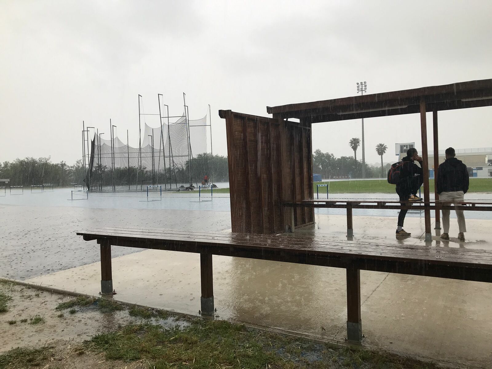 En effet, un véritable déluge s'est abattu sur la piste du stade Elsina. Avec la couleut bleu de la piste, on aurait pû se crore au bord d'une piscine.