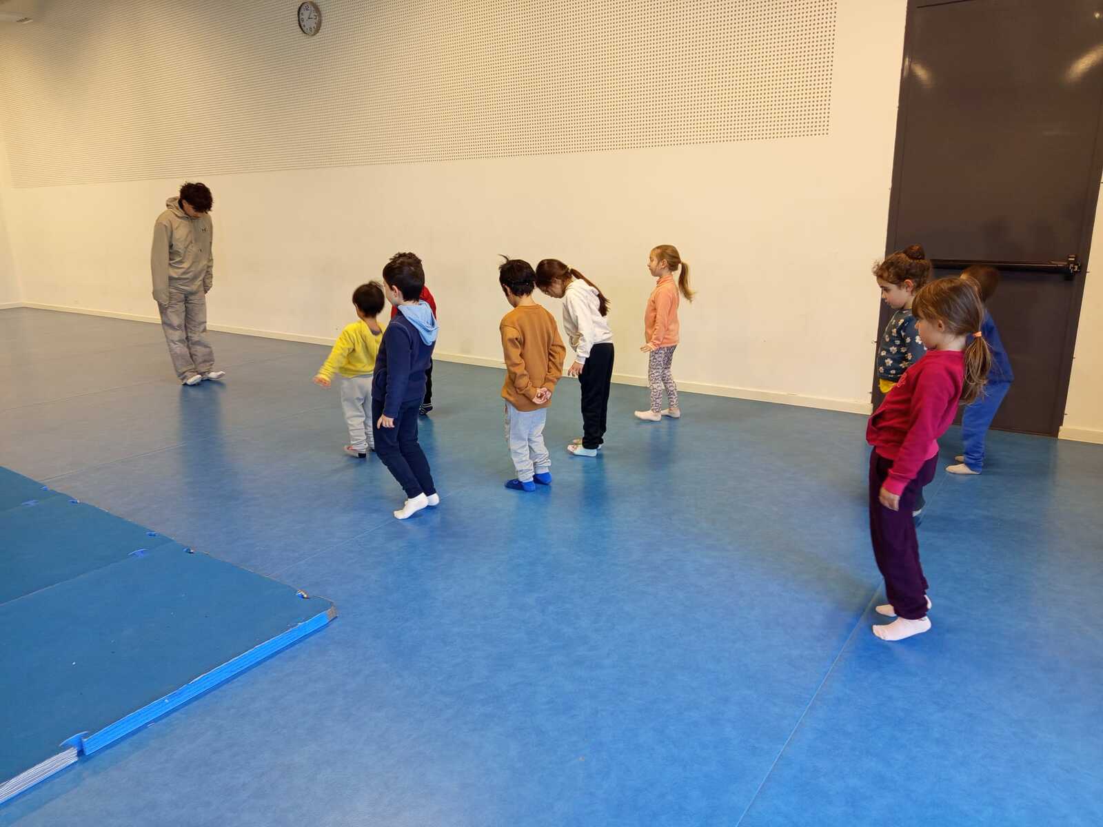 Vu le temps froid qu'il faisait nous avons préservé nos petits en faisant notre petit footing et marche rapide dans le hall du gymnase . Après une pause boisson nous avons rejoint la salle .