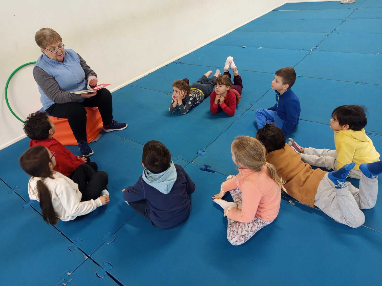 3eme atelier .. la course du mille-pattes. 2 groupes celui qui arrivait en 1er àà toucher la main de Loan qui était en face et qui repartait toucher le mur d'en face avec.le pied marquait 1 point ...plusieurs courses ont été faites.