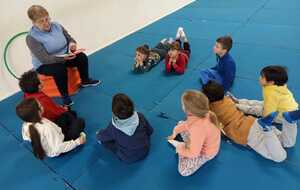 Pour terminer retour au calme avec petite séance d'inspirations et expirations suivie de la belle histoire. "La caravane passé et les chiens aboient" que je leur ai lu et donné a la fin l' explication .