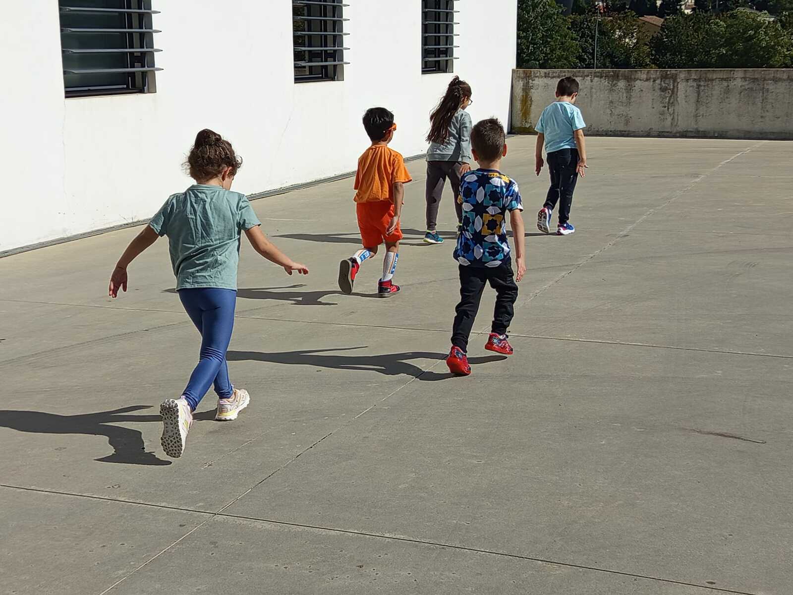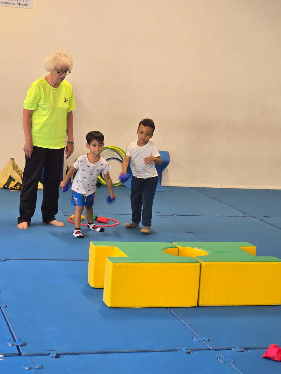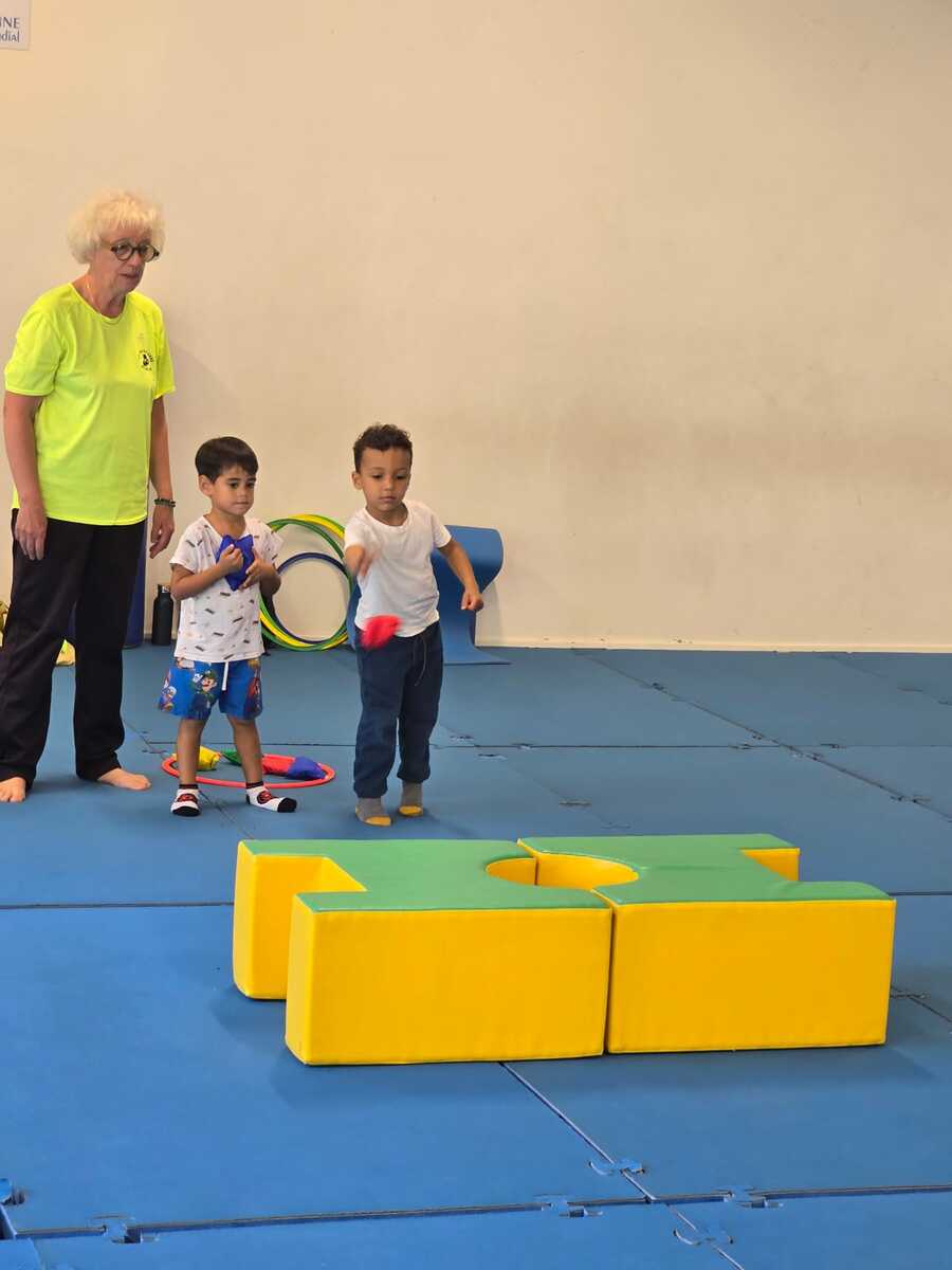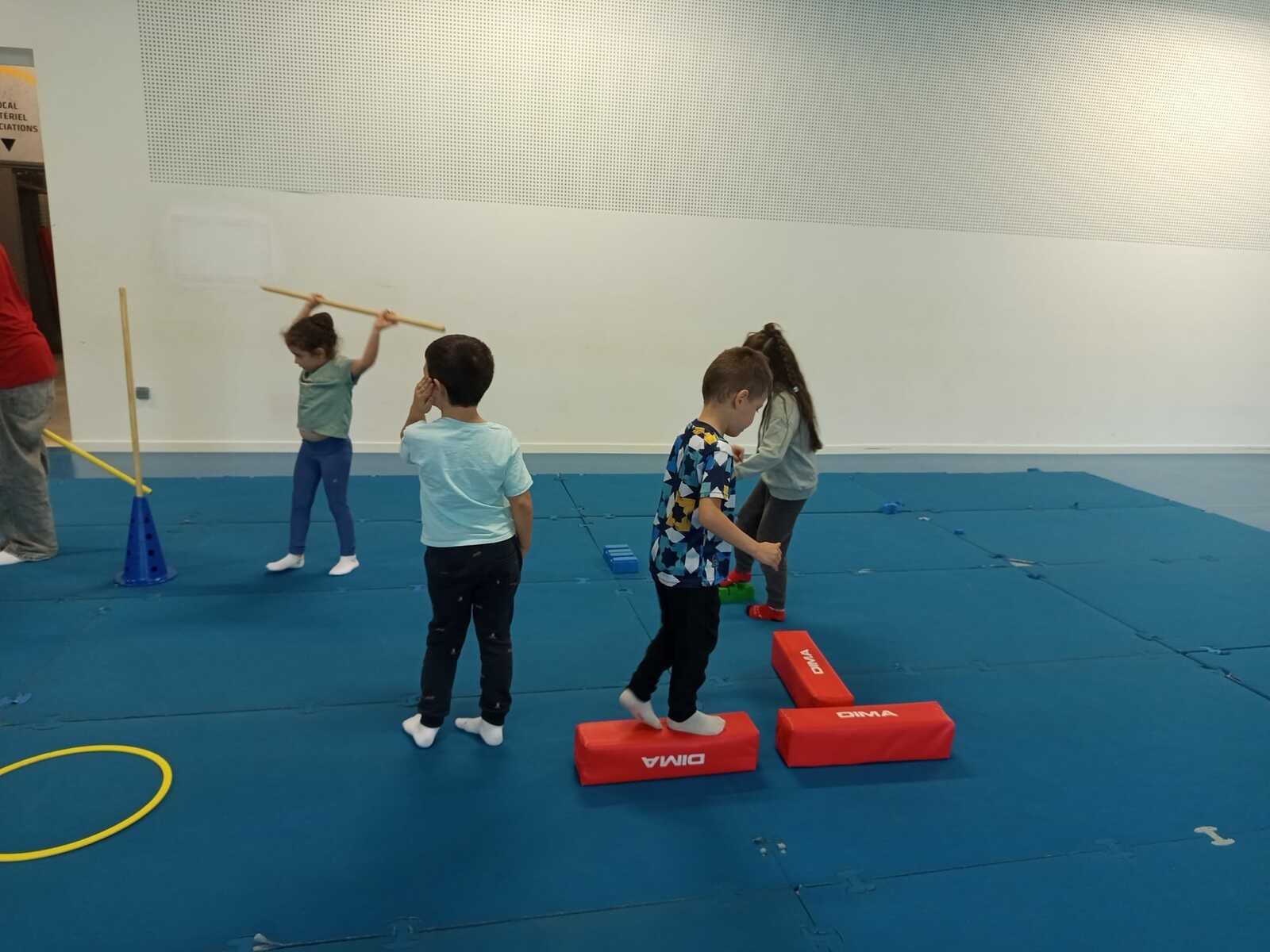 3 eme atelier courir avec un ballon de basket en le faisant rebondir a l aide d' une main ...pas toujours facile mais pour une première ils se sont bien débrouillés !👏