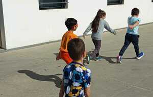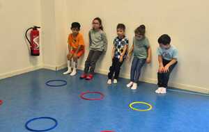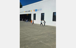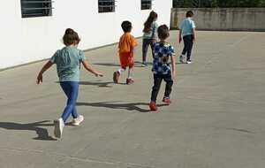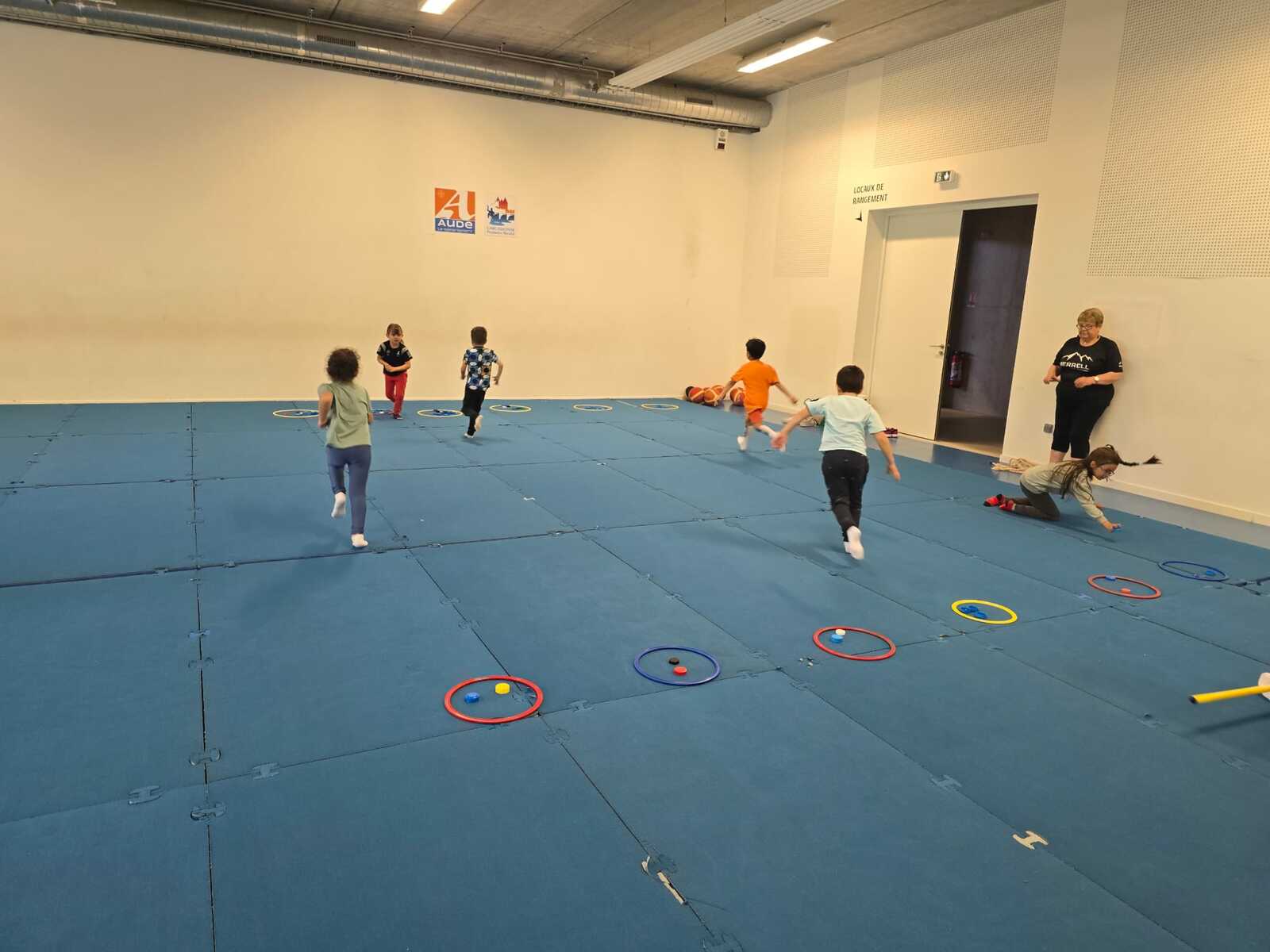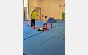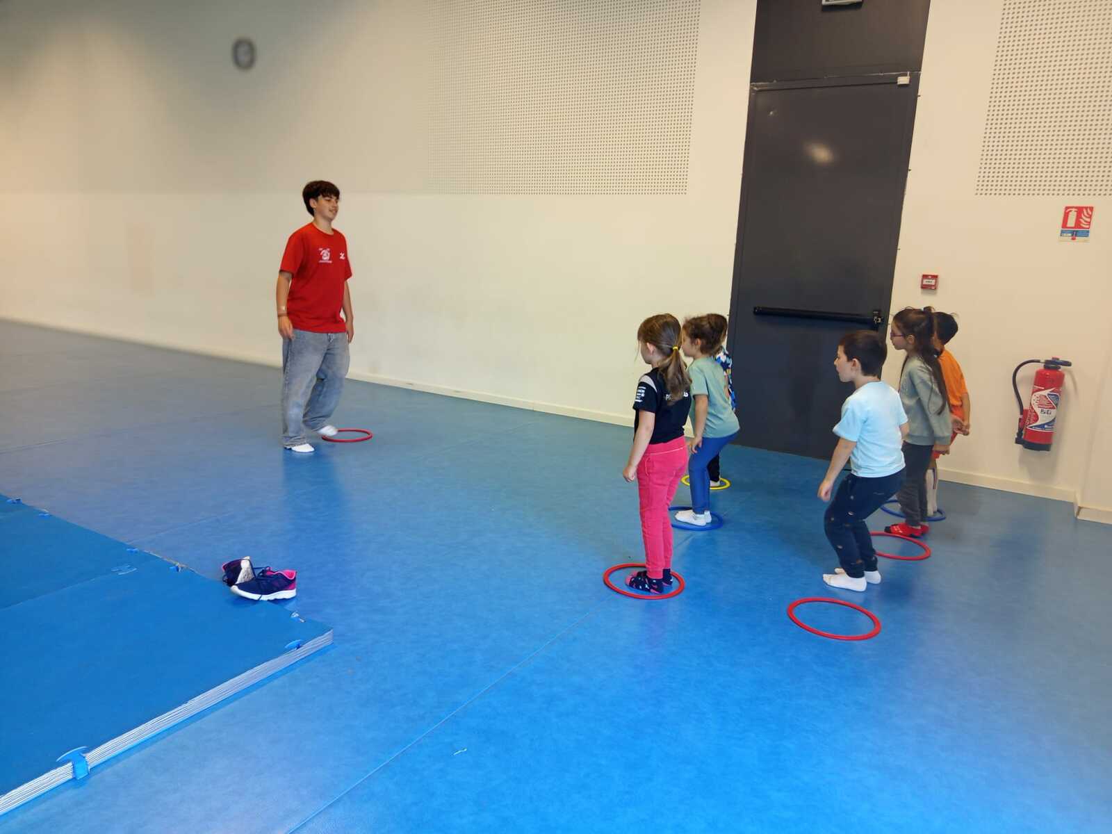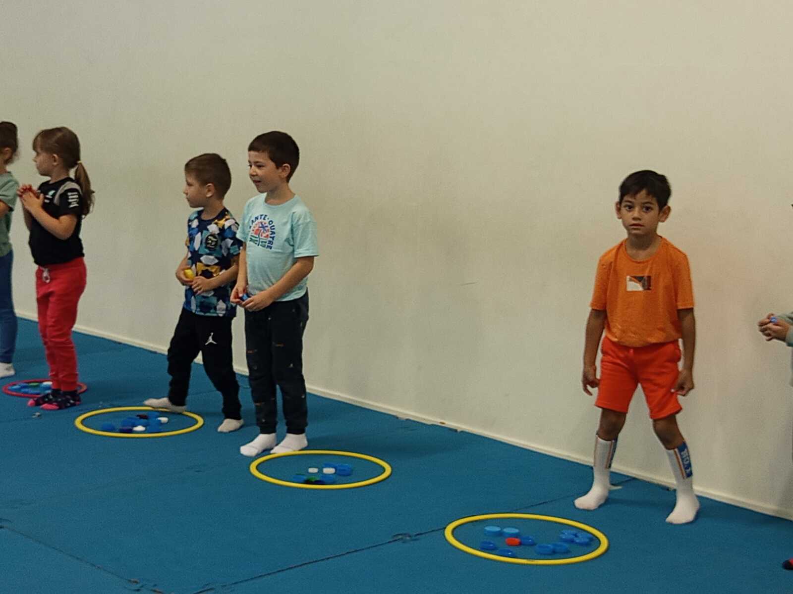 Chaque jeune avait 12 bouchons dans un cerceau et au top départ donné par Loan il fallait que chacun prenne un seul bouchon et courir le déposer dans un cerceau face à eux jusqu'au dernier bouchon ...attention il ne fallait pas se tromper de cerceau!!!