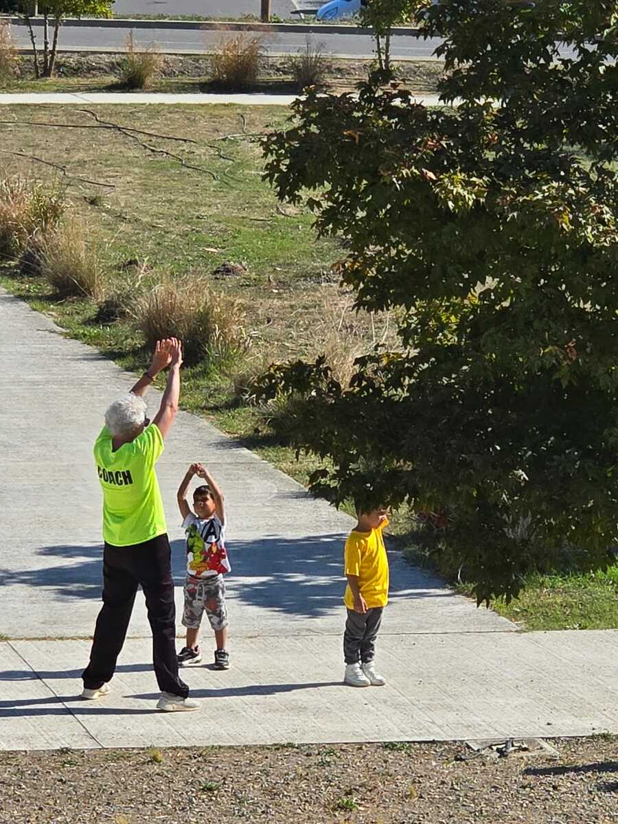 C'est sous un temps idéal que nous avons fait le petit footing et la marche rapide dehors devant le gymnase