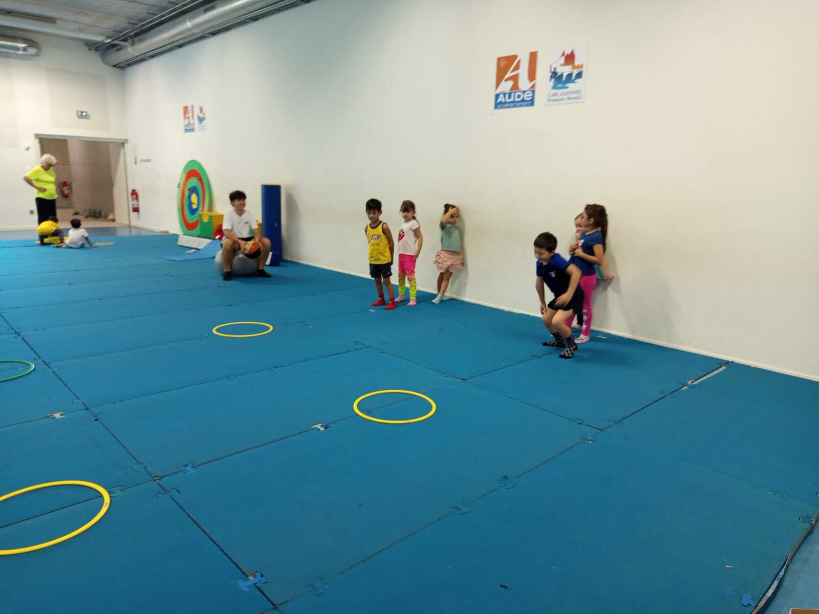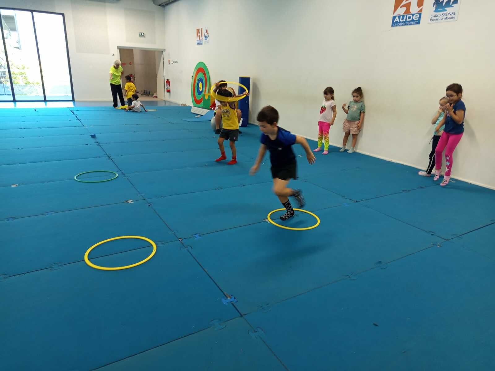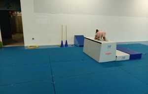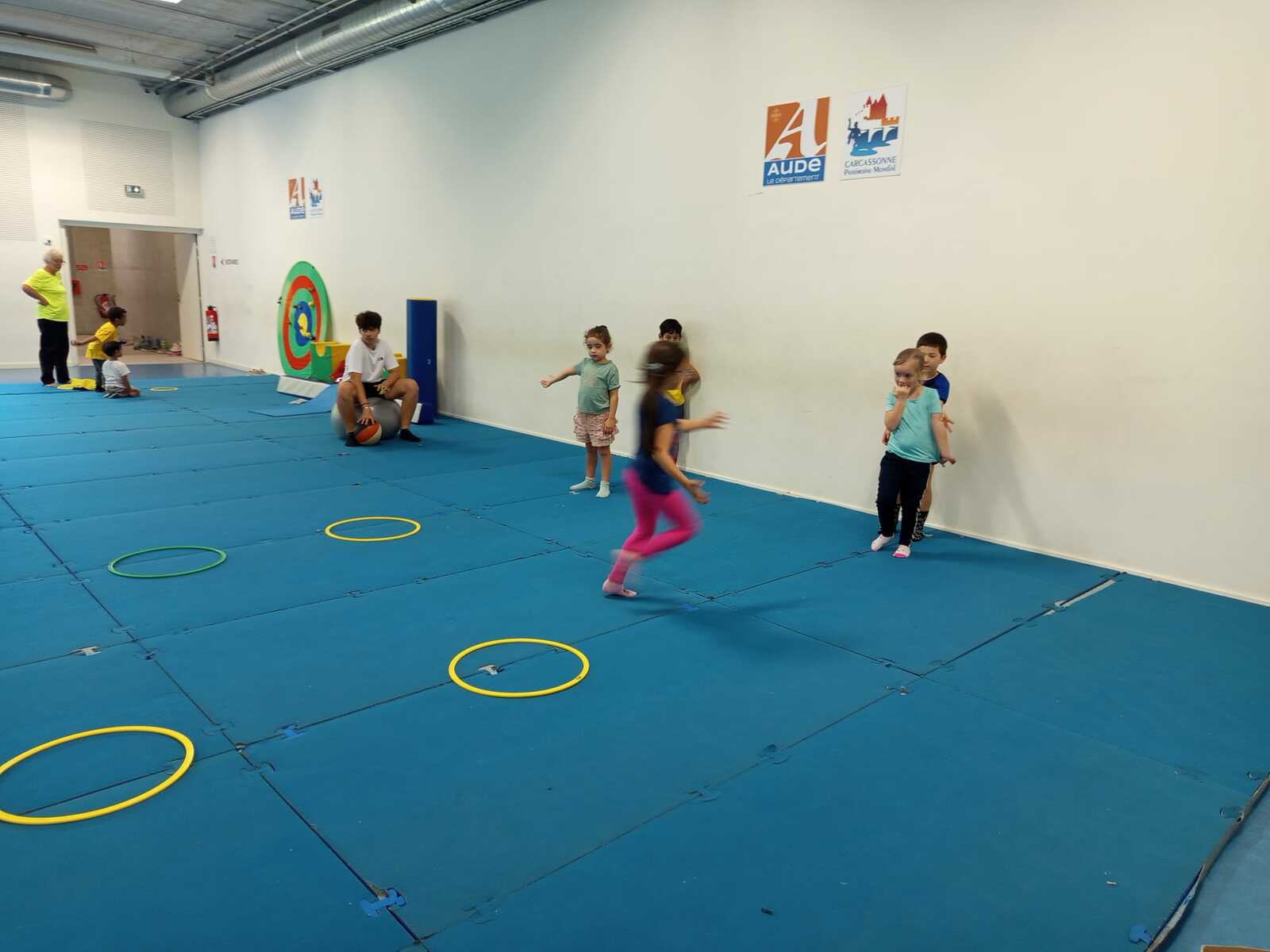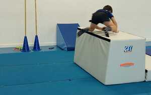 2 ème atelier : saut. Il fallait s élancer et sauter sur le haut tapis qui était en face ...une première et chacun a réussi de se retrouver sur le tapis ....ils ont tous apprécié, voir photos, apprentissage au saut en hauteur (voir photos )