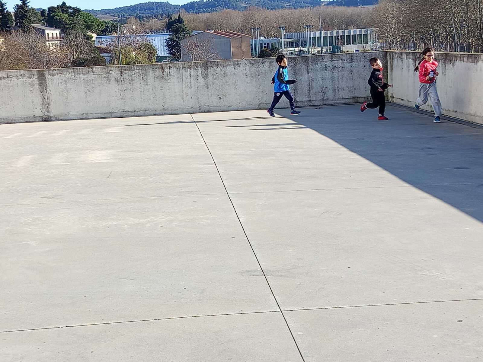 C'est sous le 🌞que nous avons fait le petit footing devant le gymnase suivi de la marche rapide.