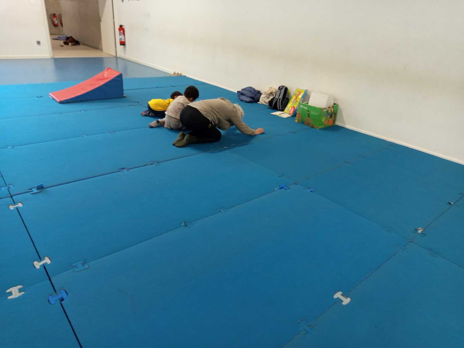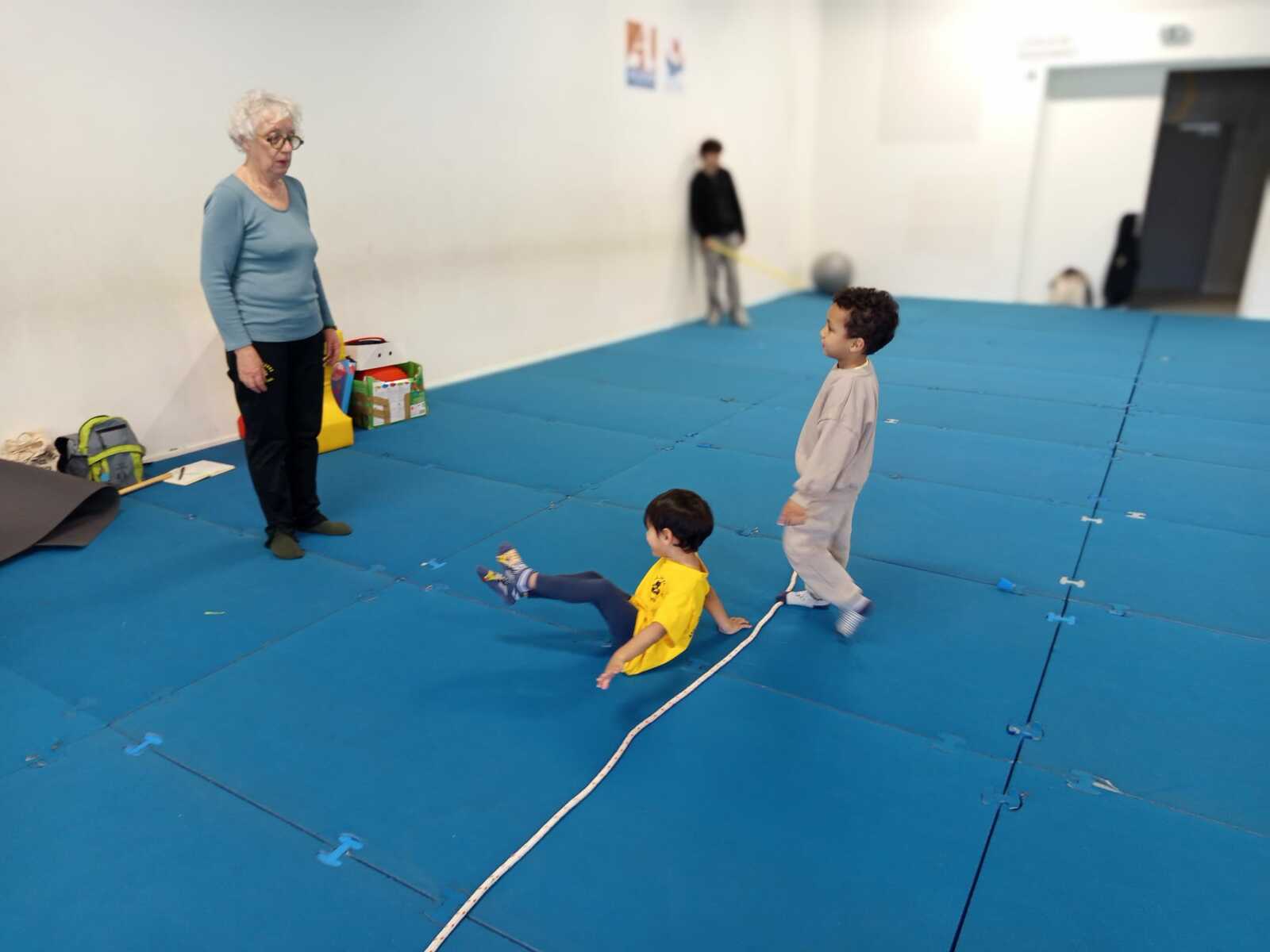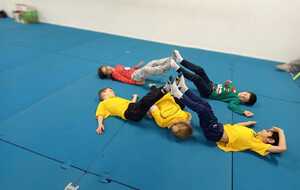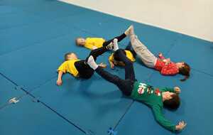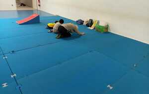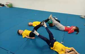 3ème atelier... le pont. Par 2 face a face pieds contre pieds il fallait faire un pont et celui qui était seul devait passer en rampant sous les ponts et a la sortie prendre la place d'un qui fait le pont et cela jusqu'à ce que tous soient passés sous les ponts