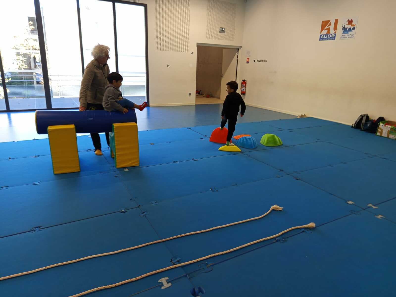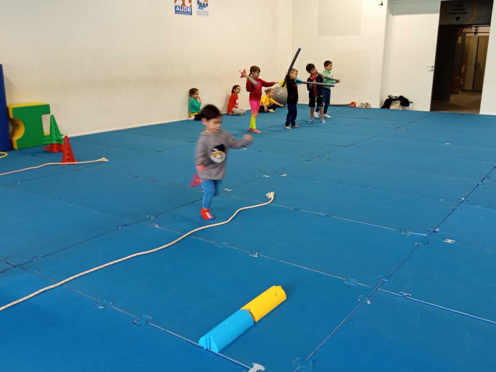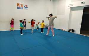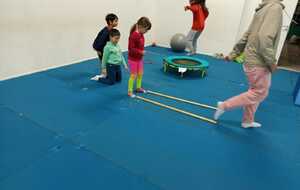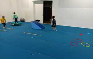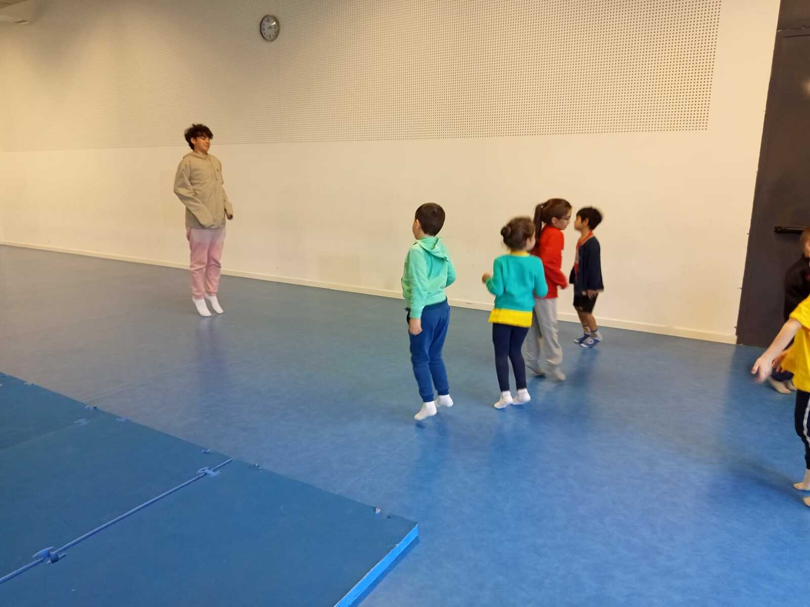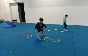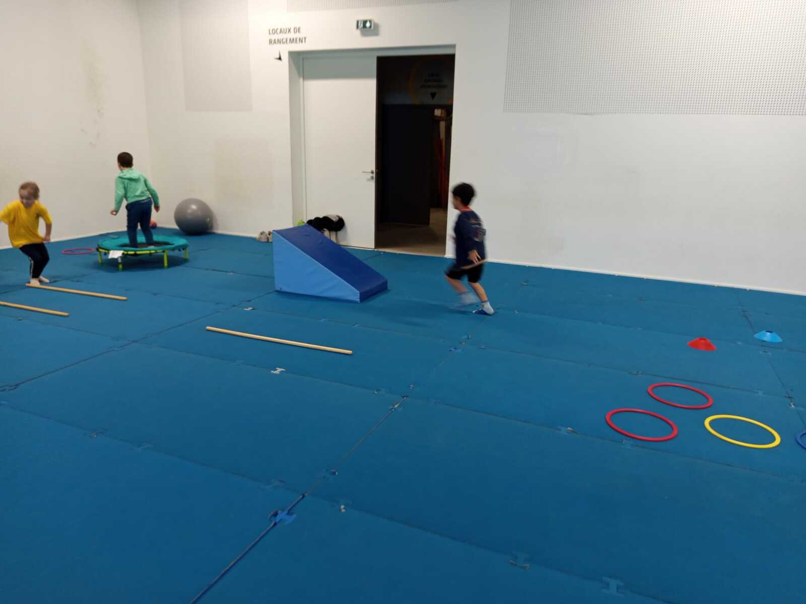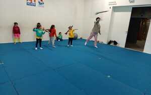Après quelques petits échauffements avec Loan nous avons commencé par le 1er atelier : le parcours ludique avec obstacles