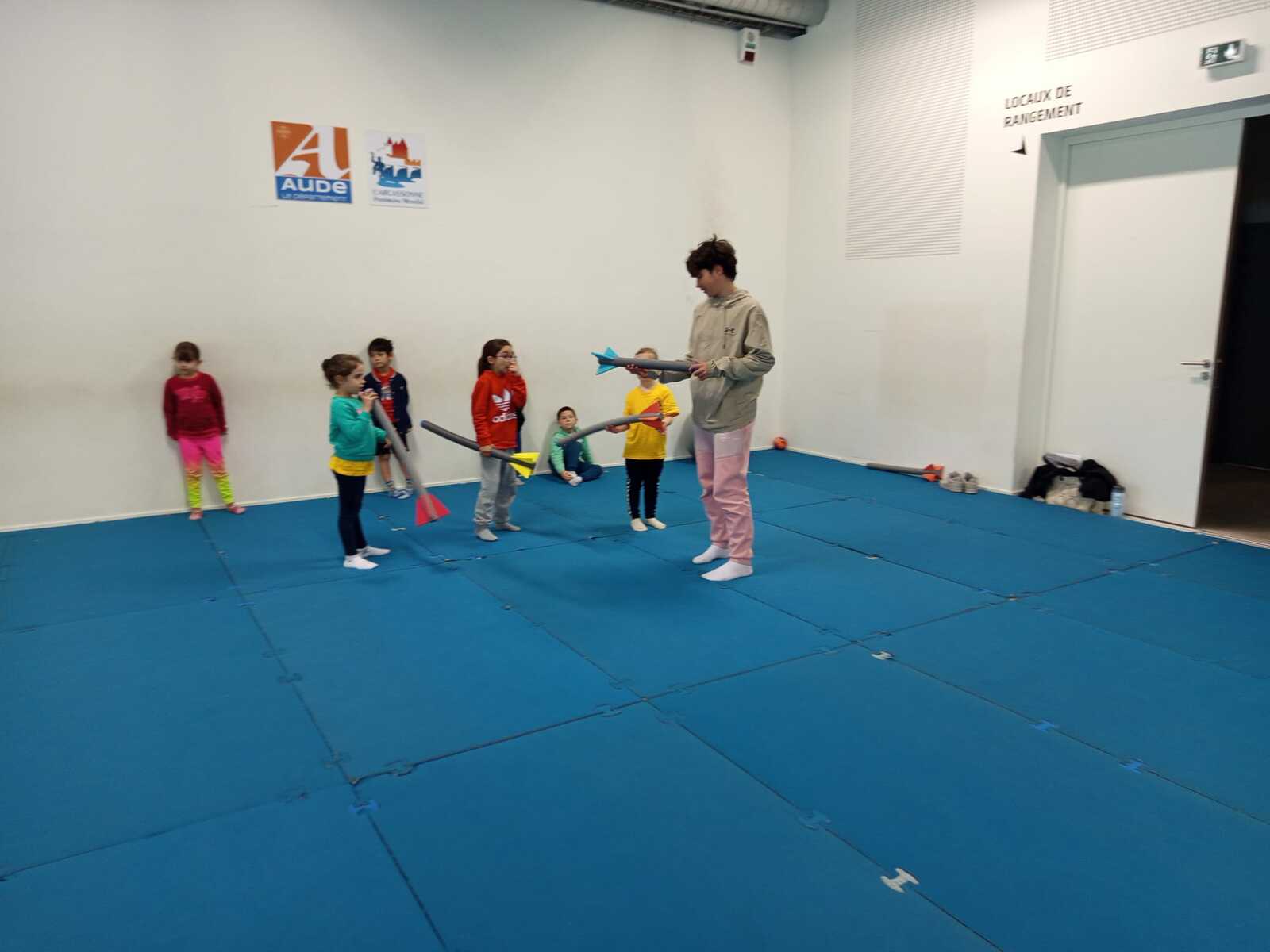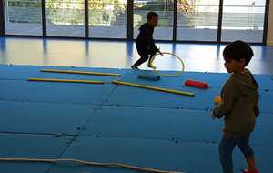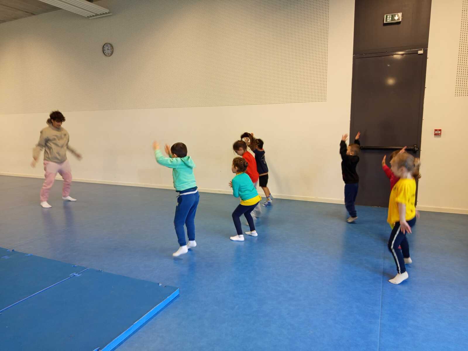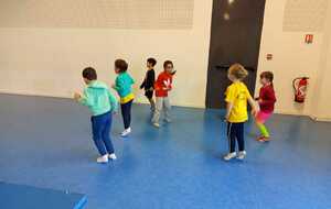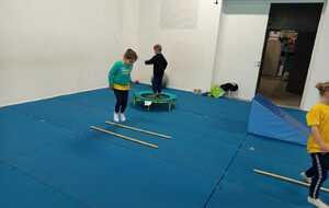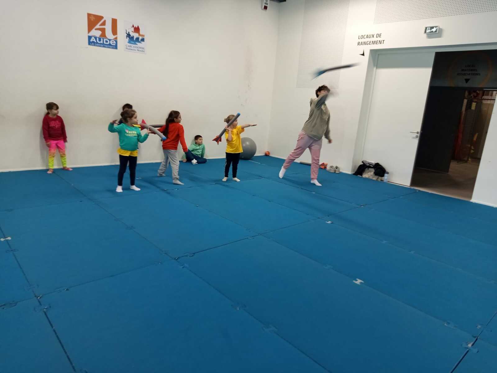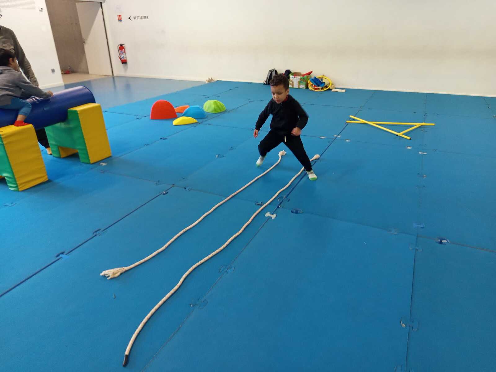 Après quelques petits échauffements avec Loan nous avons commencé par le 1er atelier : le parcours ludique avec obstacles