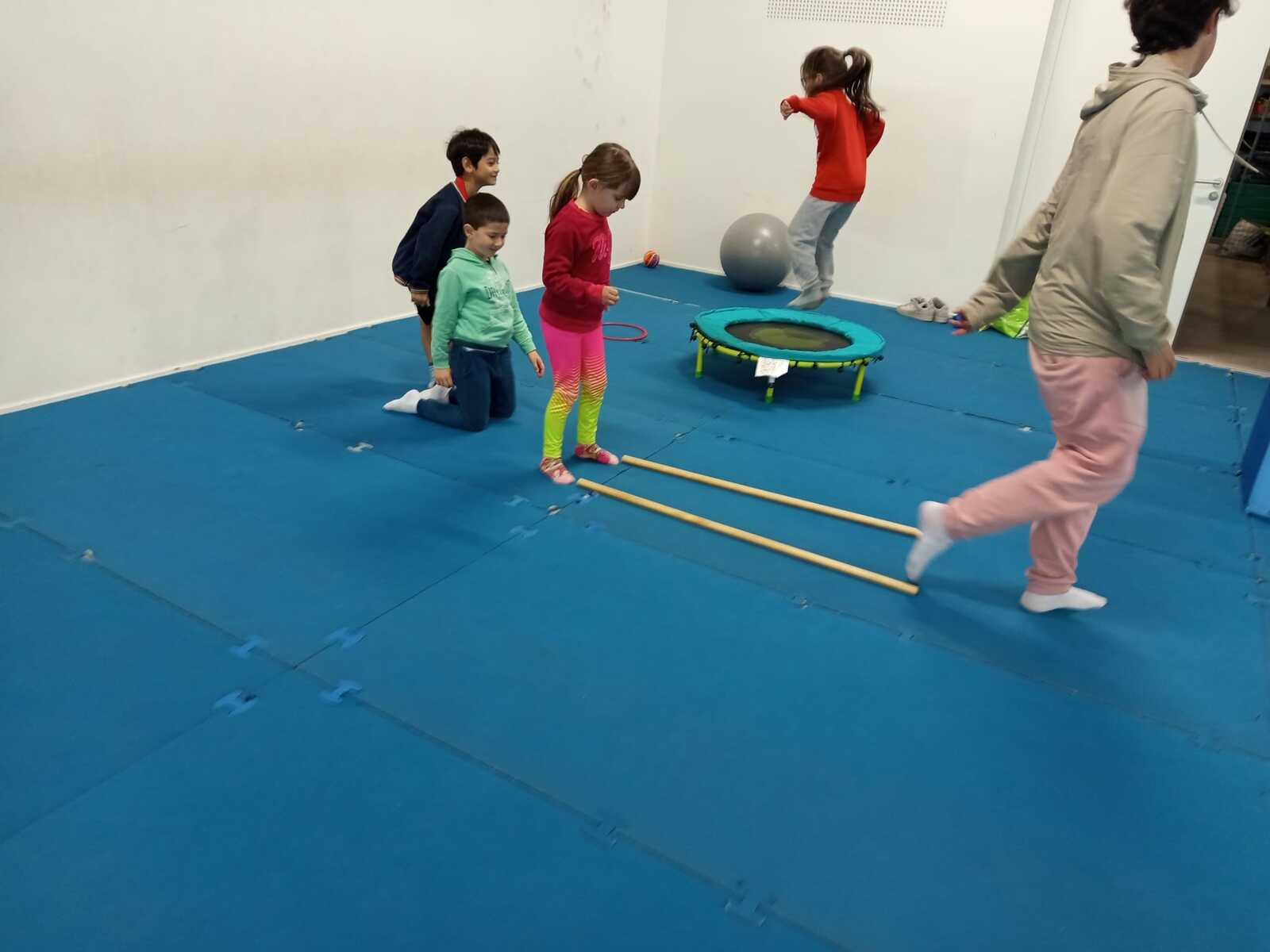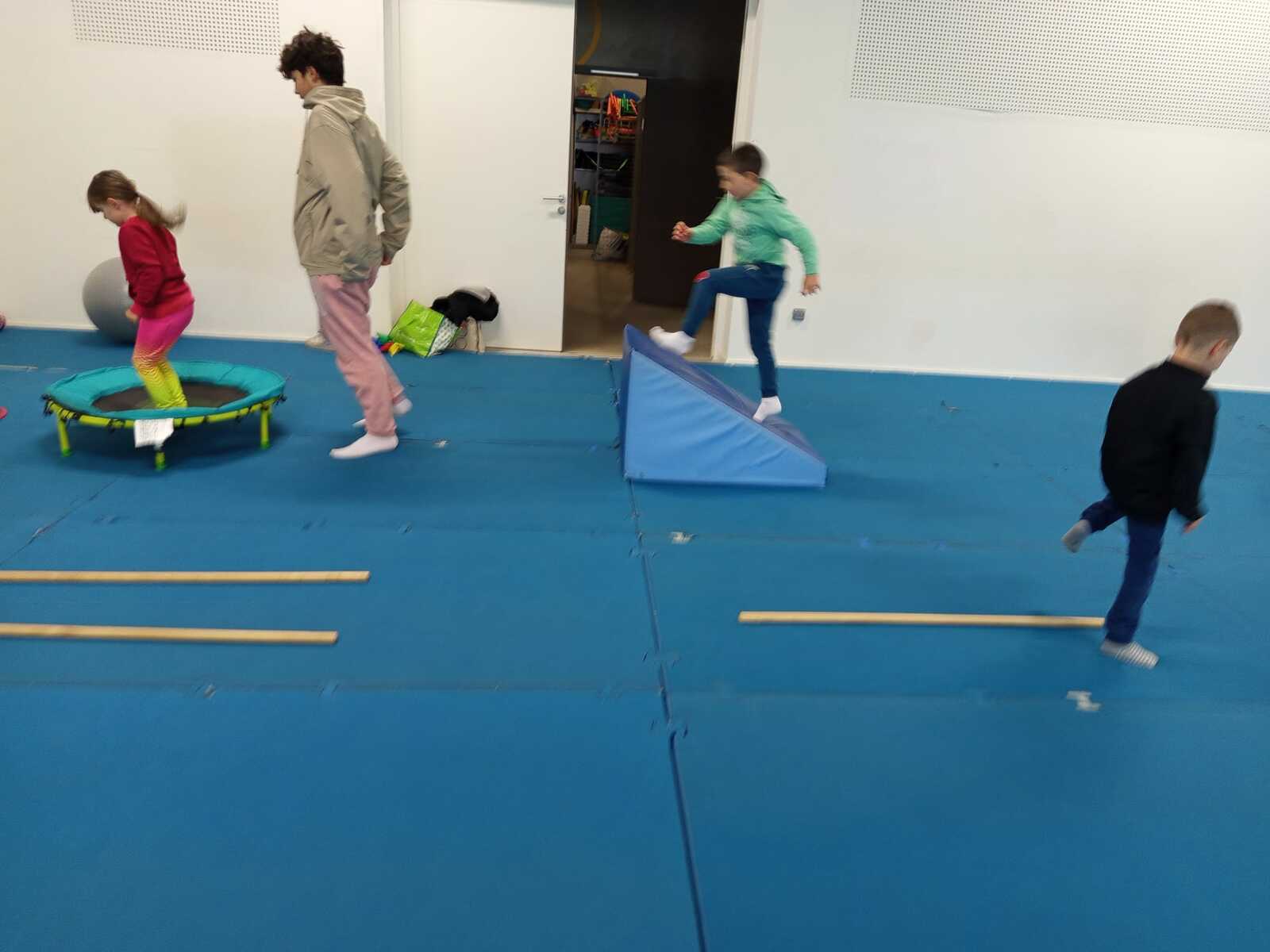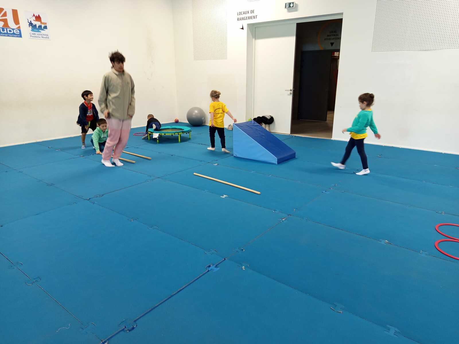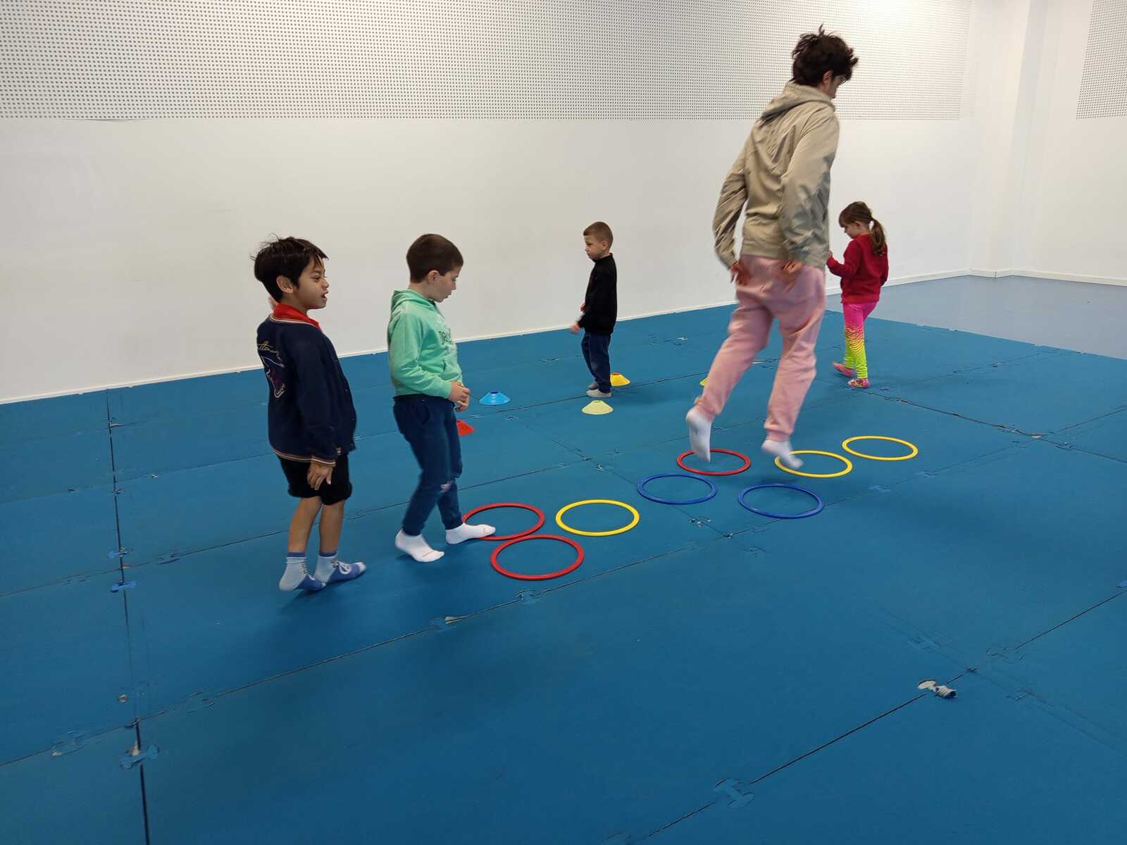 Après quelques petits échauffements avec Loan nous avons commencé par le 1er atelier : le parcours ludique avec obstacles