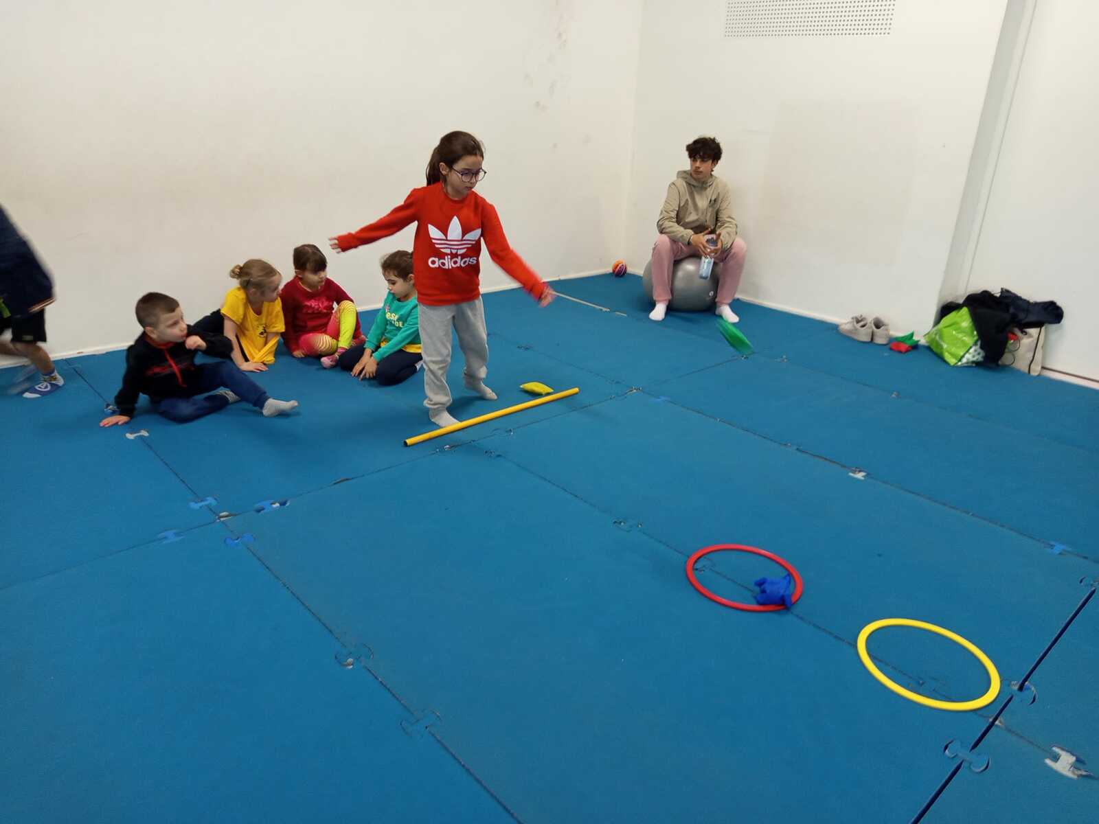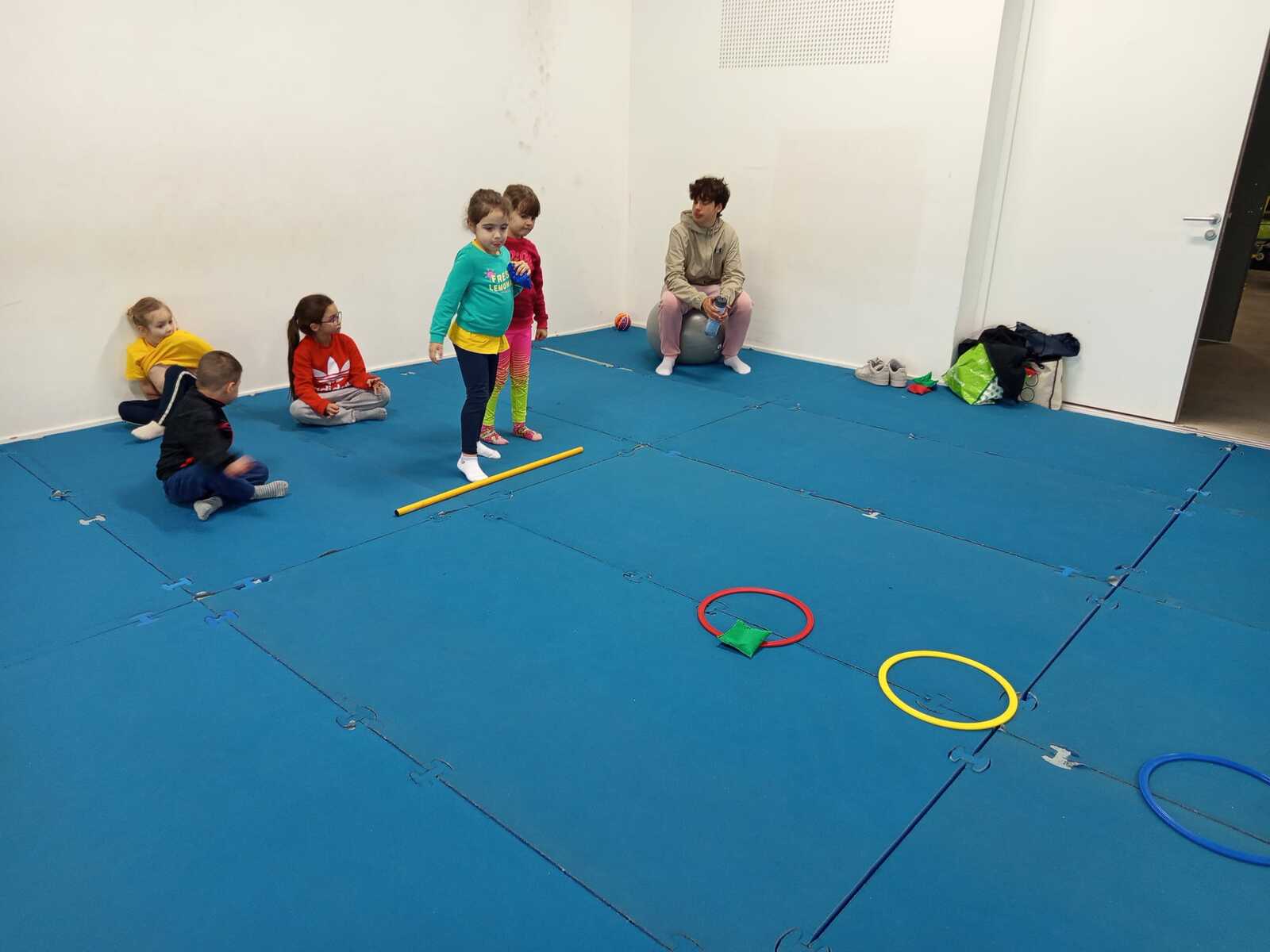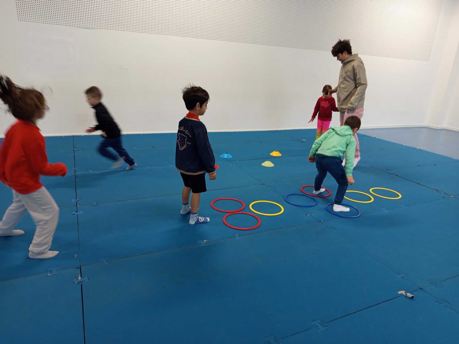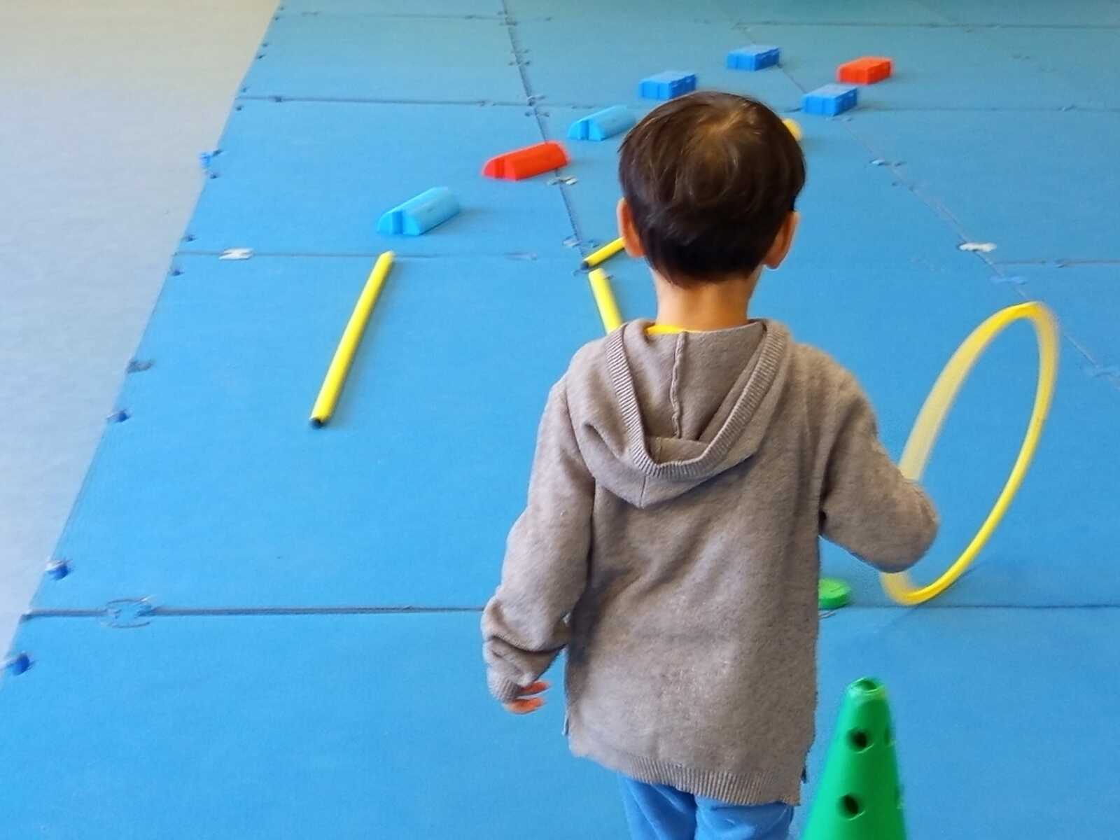 Après quelques petits échauffements avec Loan nous avons commencé par le 1er atelier : le parcours ludique avec obstacles