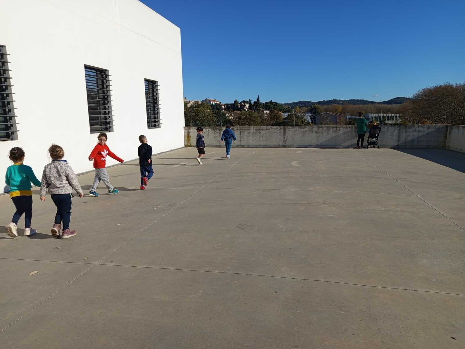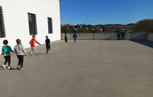 C'est sous un temps ensoleillé mais froid que nous avons fait le footing et la marche rapide devant le gymnase.