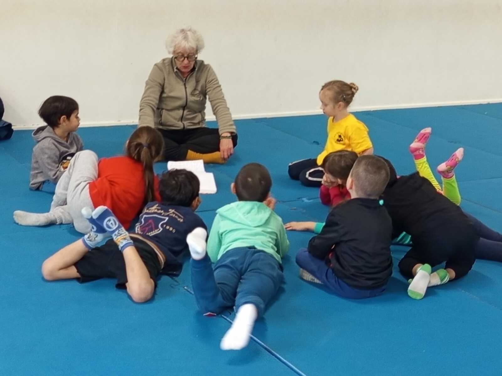 Après qelques respirations et étirements. Michèle leur a raconté la belle histoire du voyage depuis le lit .