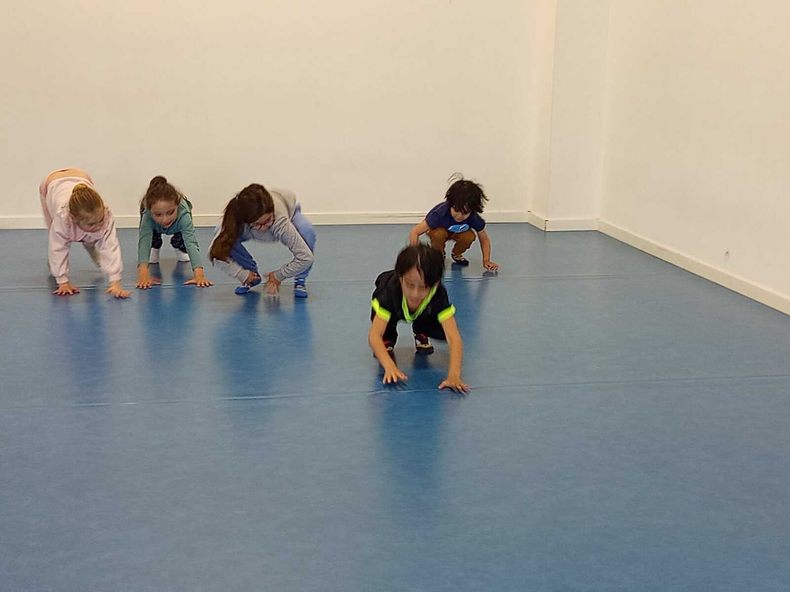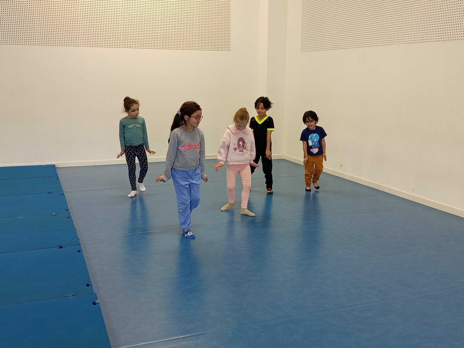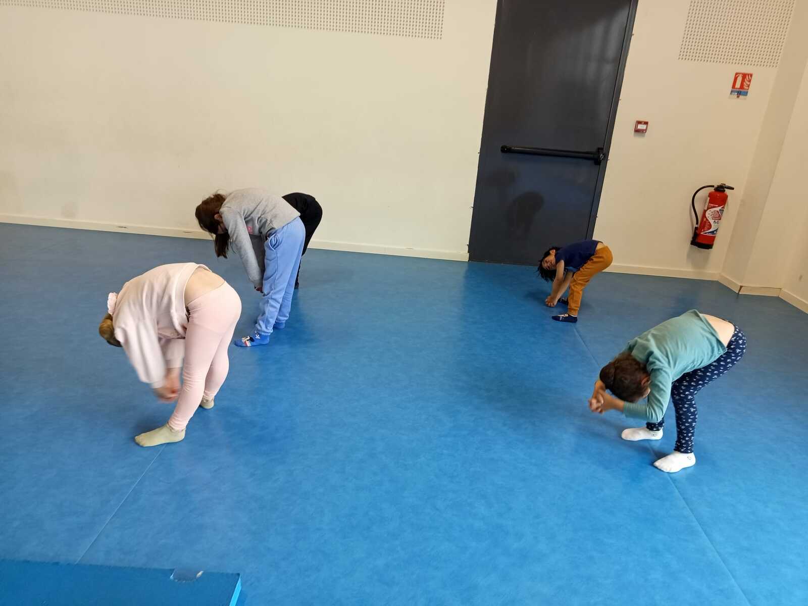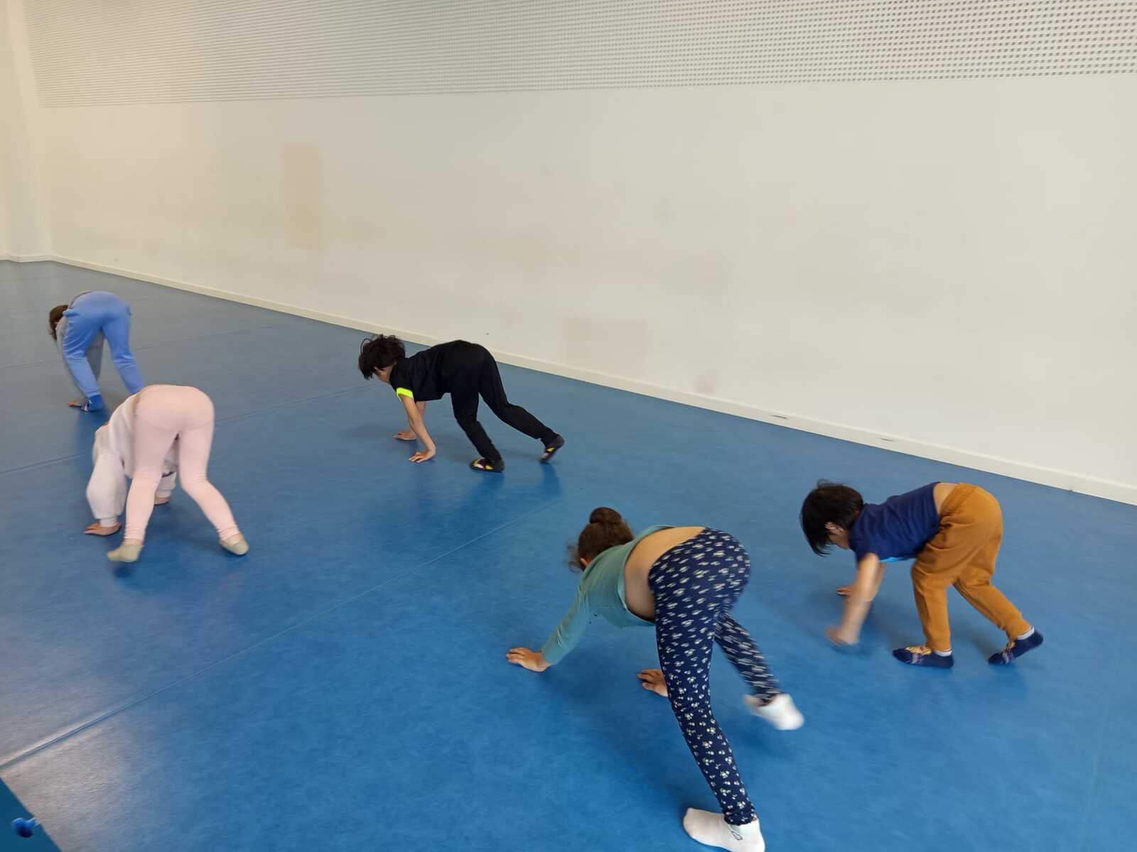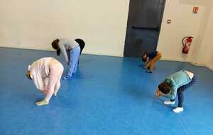 Après une petite pause boisson nous avons rejoint la salle pour l'échauffement (l'éléphant et les déplacements d'animaux ...🐈⬛🐰🐸🦆🦘🐧)