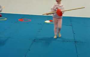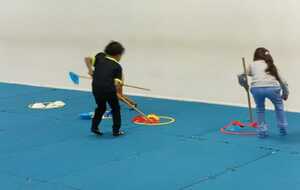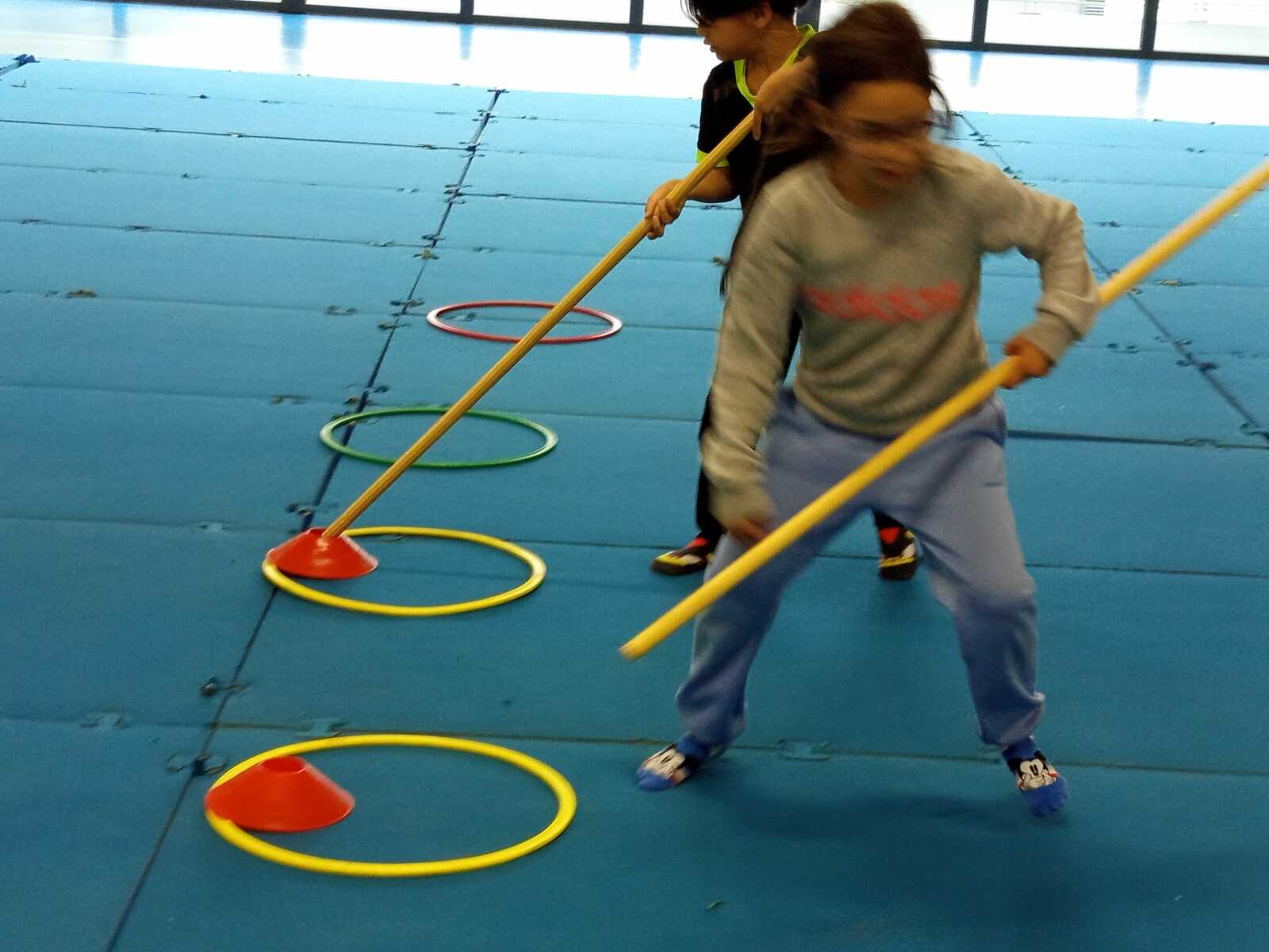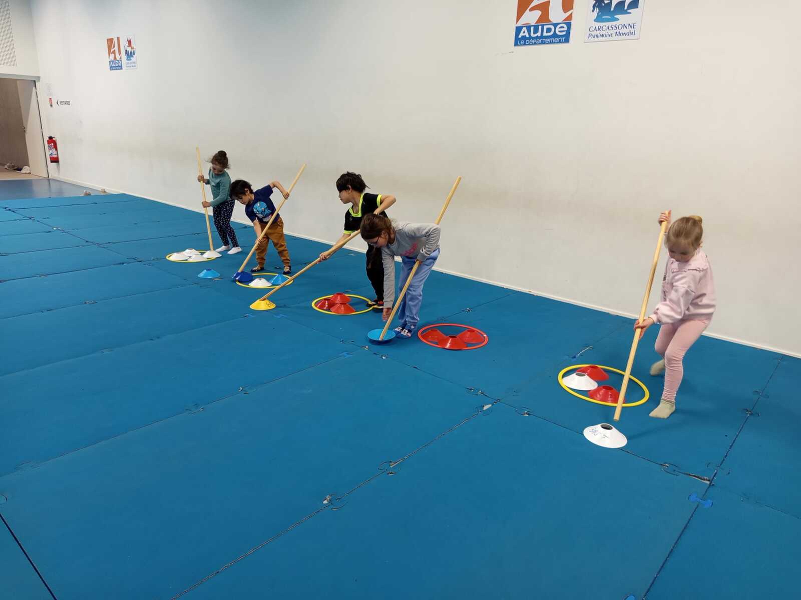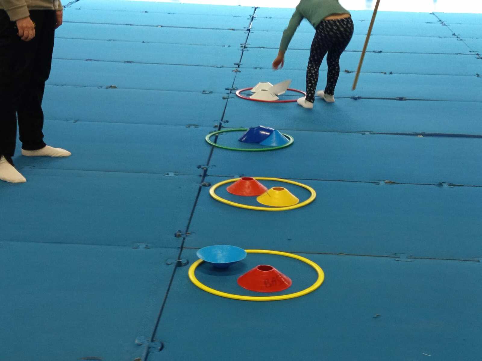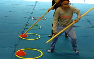 2ème atelier ...la course avec bâton et coupelles ....jeu d'adresse et de coordination. Chaque jeune était derrière un cerceau contenant 4 coupelles avec un trou et eux avaient 1 un bâton, au top départ avec l'aide du bâton ils devaient enfiler le bâton dans le trou de la coupelle et partir en courant vers le cerceau qui était loin devant eux pour y déposer la coupelle et revenir en courant et reprendre une autre coupelle et cela jusqu a la 4 ème coupelle et revenir derrière leur cerceau .