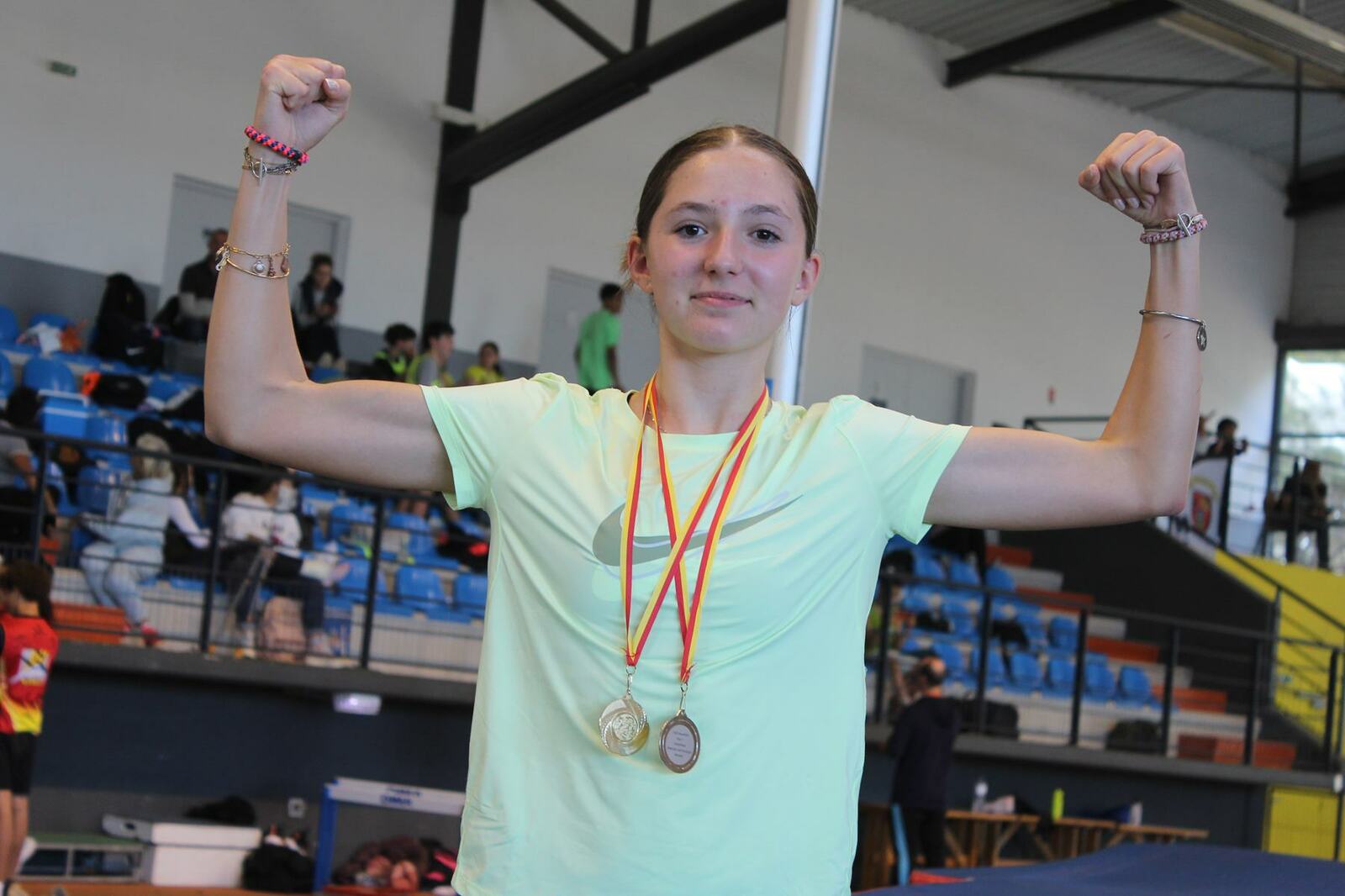 - un triplet sur le triple saut, Katy Watt en Or avec 7,28 m, Clelie Sabadie médaille d'argent avec 7,12 m, Cloé Caverivière médaille de bronze avec 7,03 m.