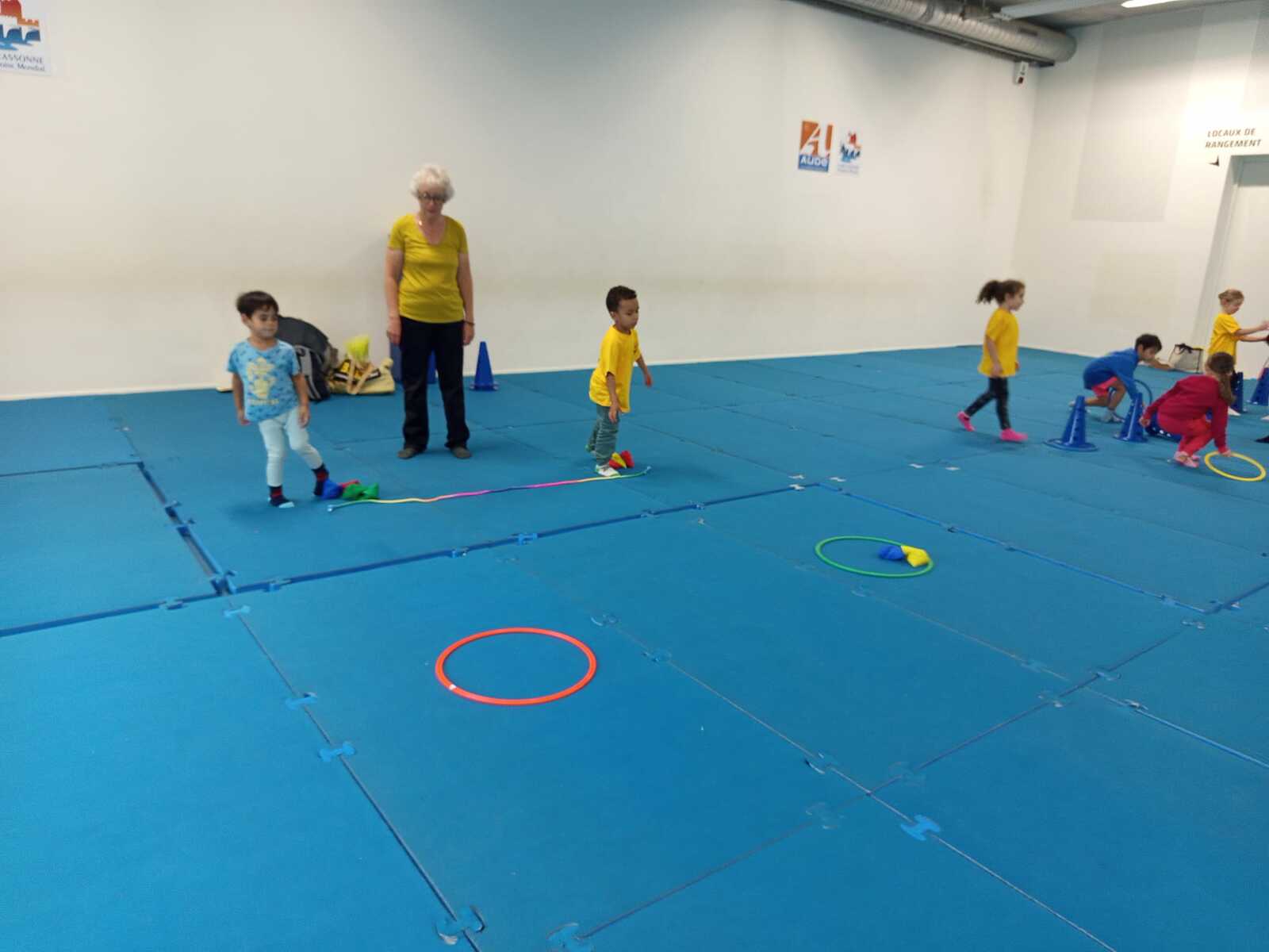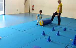 3ème atelier : jeu de rapidité. Un cerceau au milieu avec plein de petites balles et tout autour à distance égale des cerceaux et à côté un jeune. Au top départ chaque jeune devait aller récupérer une seule balle dans le cerceau du milieu et la poser dans son cerceau et repartir en chercher une autre et cela jusqu' a ce qu il ne reste plus de balles dans le cerceau du centre.Chaque jeune fait le compte de ses balles ce qui donne les points (2 balles =2 points ) cela a été fait plusieurs fois et a la fin on a totalisé le nombre de points de chacuns ...il y a eu 2 exeqos mais les autres n' ont pas démérités ...