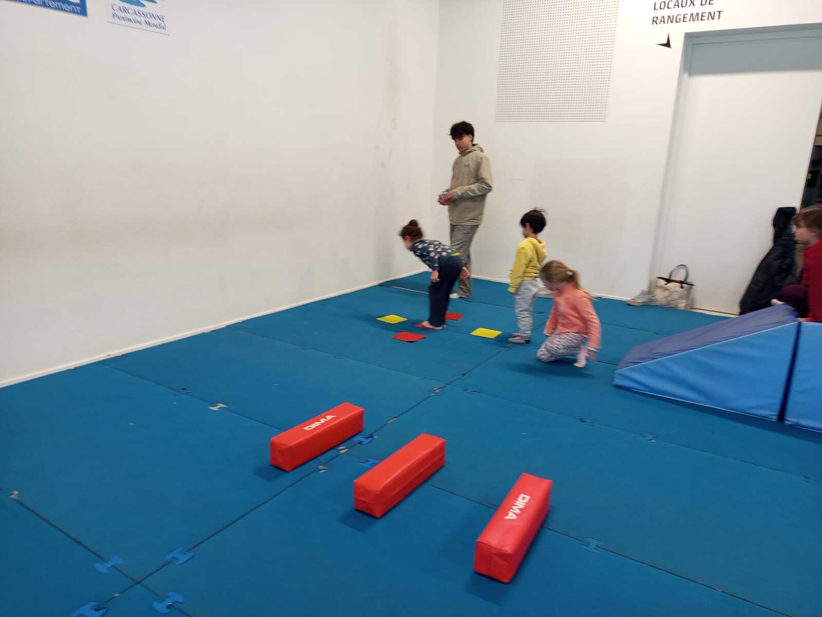 Vu le temps froid qu'il faisait nous avons préservé nos petits en faisant notre petit footing et marche rapide dans le hall du gymnase . Après une pause boisson nous avons rejoint la salle .