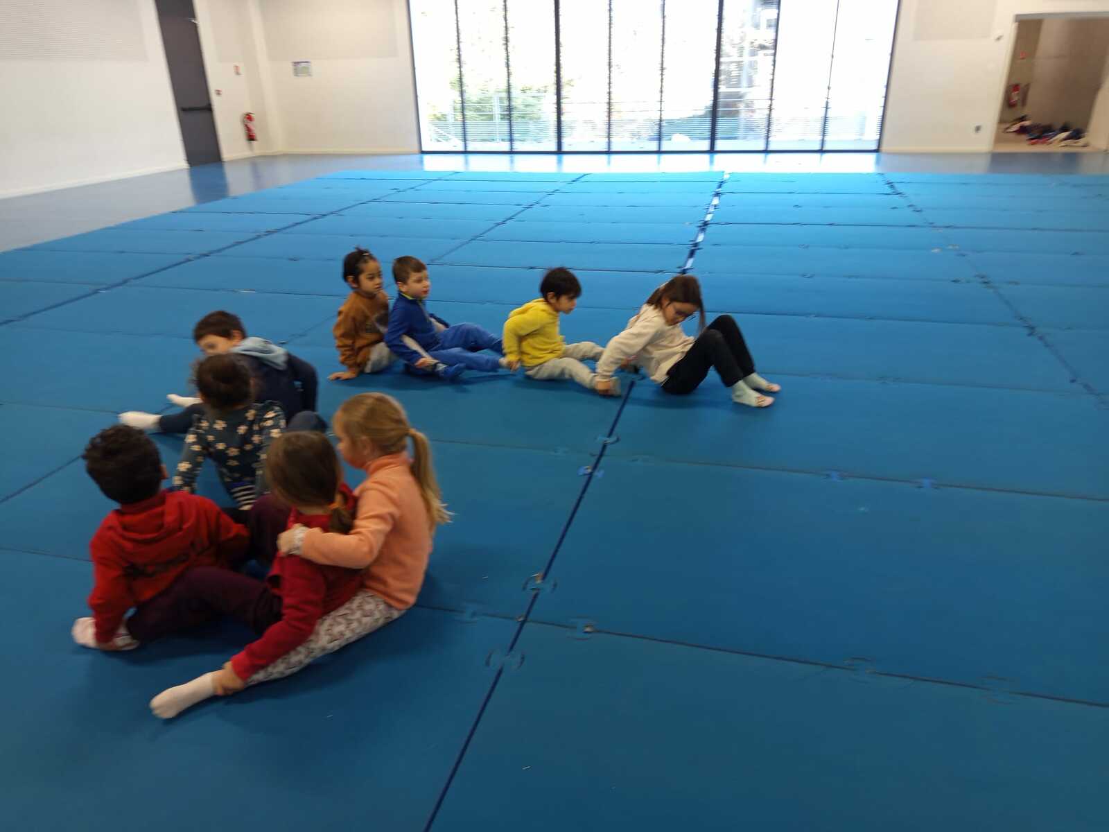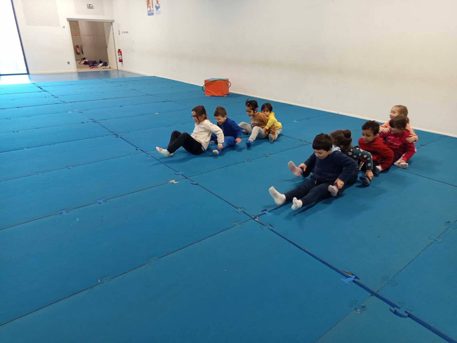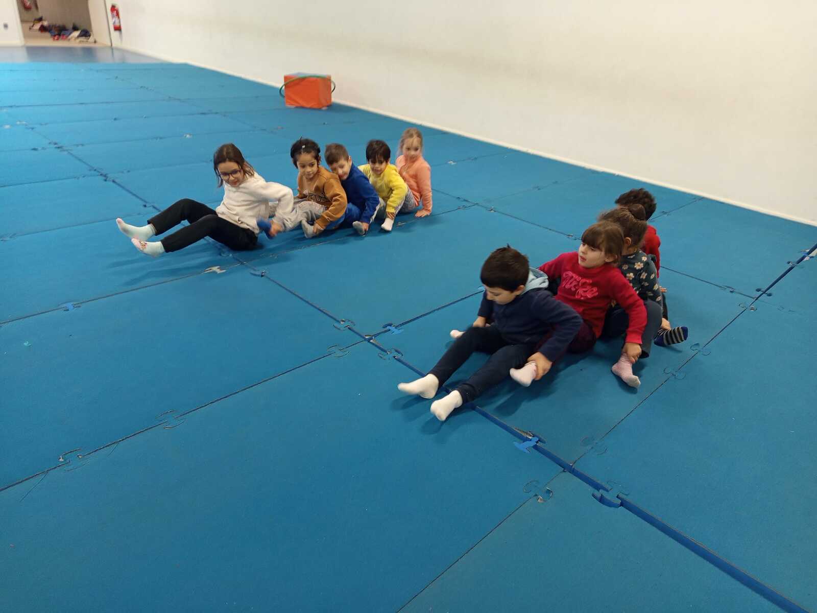 3eme atelier .. la course du mille-pattes. 2 groupes celui qui arrivait en 1er àà toucher la main de Loan qui était en face et qui repartait toucher le mur d'en face avec.le pied marquait 1 point ...plusieurs courses ont été faites.