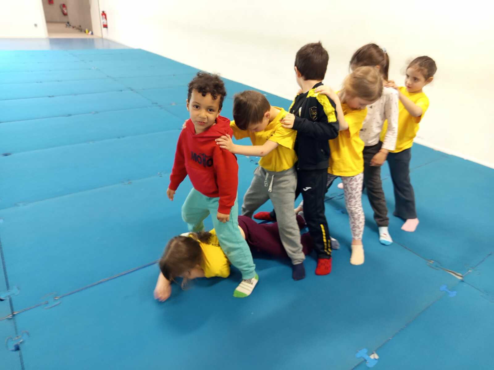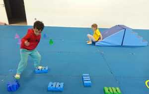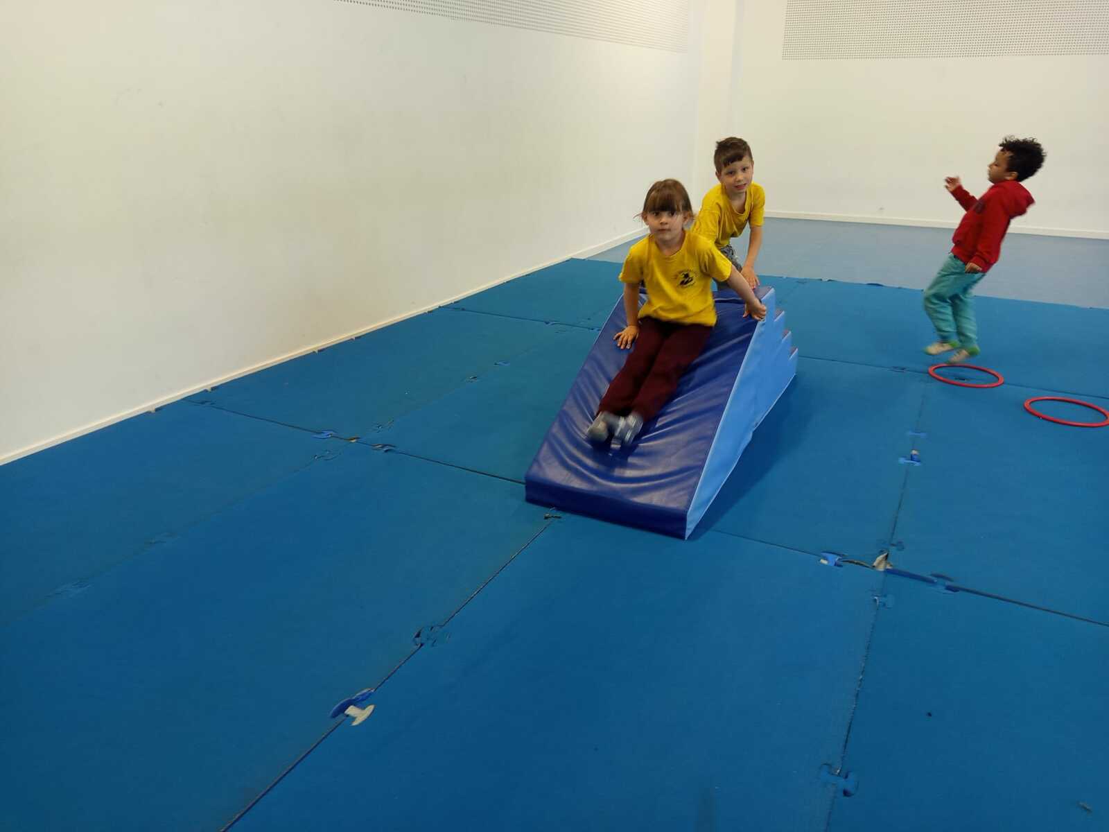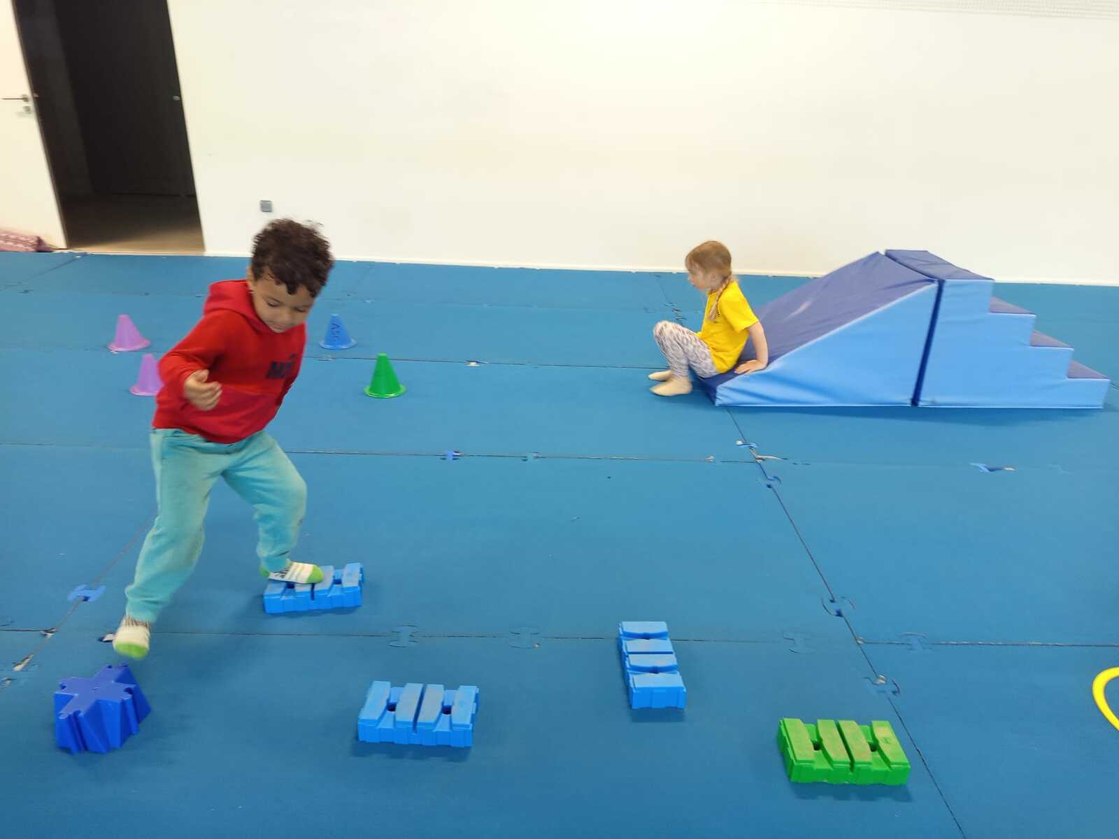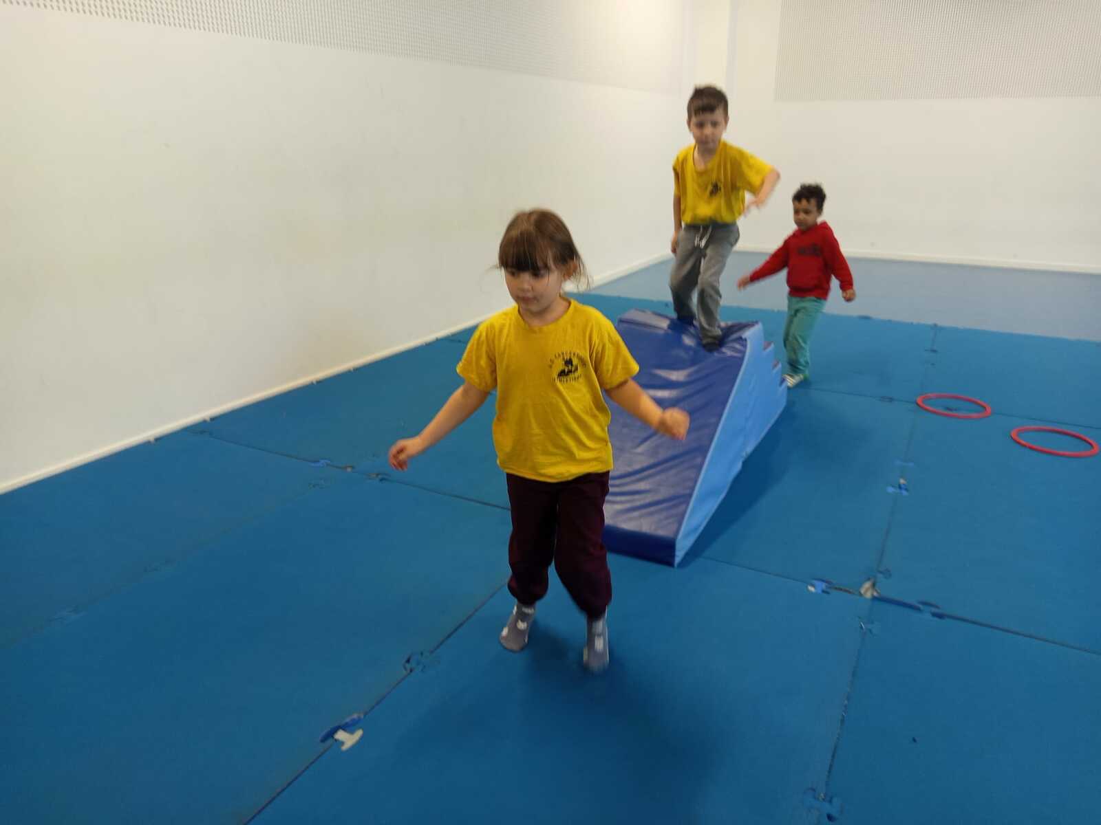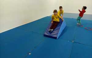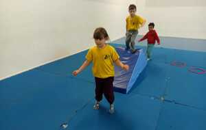 2 ème....la course avec cerceaux. Les jeunes étaient devant 2 cerceaux et tenait un jalon. Au top départ chaque jeune sautait dans le 1er cerceau puis dans le 2eme et avec l aide du jalon il faisait avancer le cerceau qui était derrière lui et le passait devant et ainsi de suite jusqu'à la ligne d'arrivée délimitée par des plots .et ensuite ils revenaient au point de départ pareillement. Cela a été fait plusieurs fois afin de s'améliorer dans la vitesse et également dans l' ordre d 'arrivée .