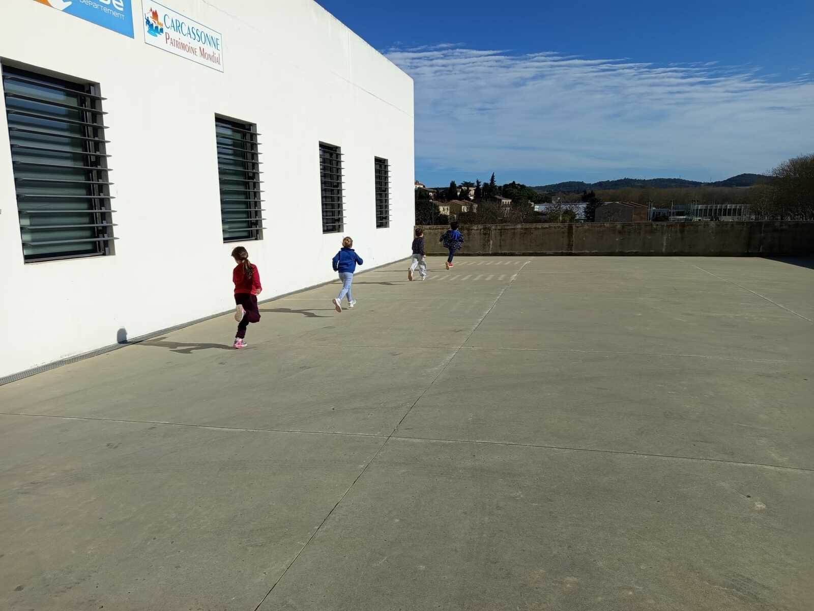 C'est sous le ☀️total que nous avons fait le footing et la marche rapide devant le gymnase.
