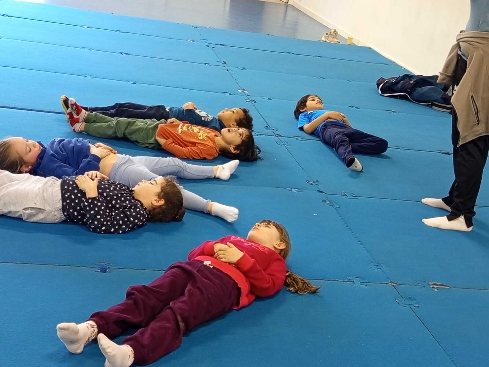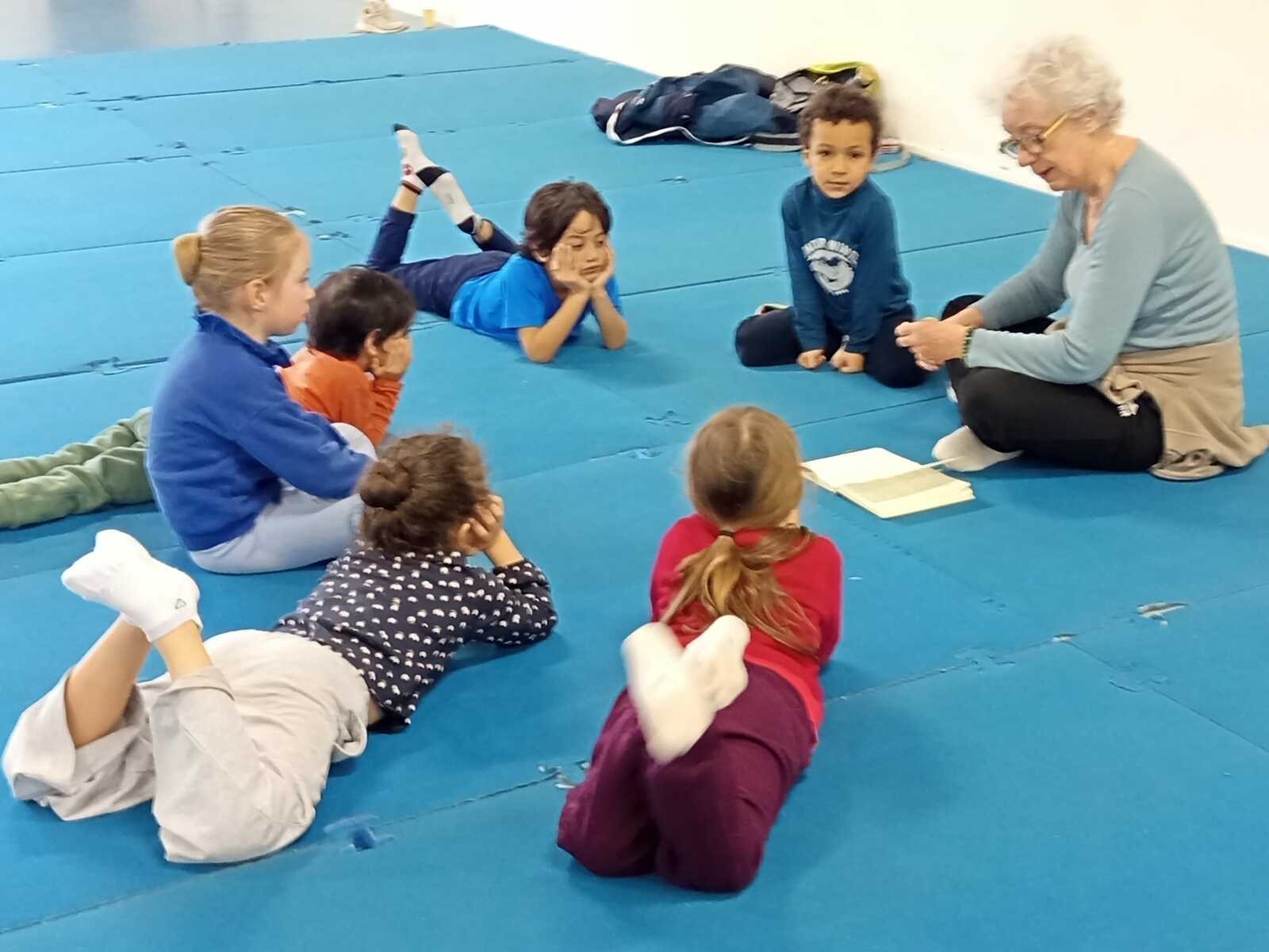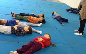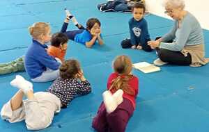Pour terminer nous avons rejoint le petit groupe de Michèle, qui eux aussi ont bien travailler, pour le retour au calme avec petite séance sur la respiration suivie de la suite et fin de l histoire des animaux font du sport.