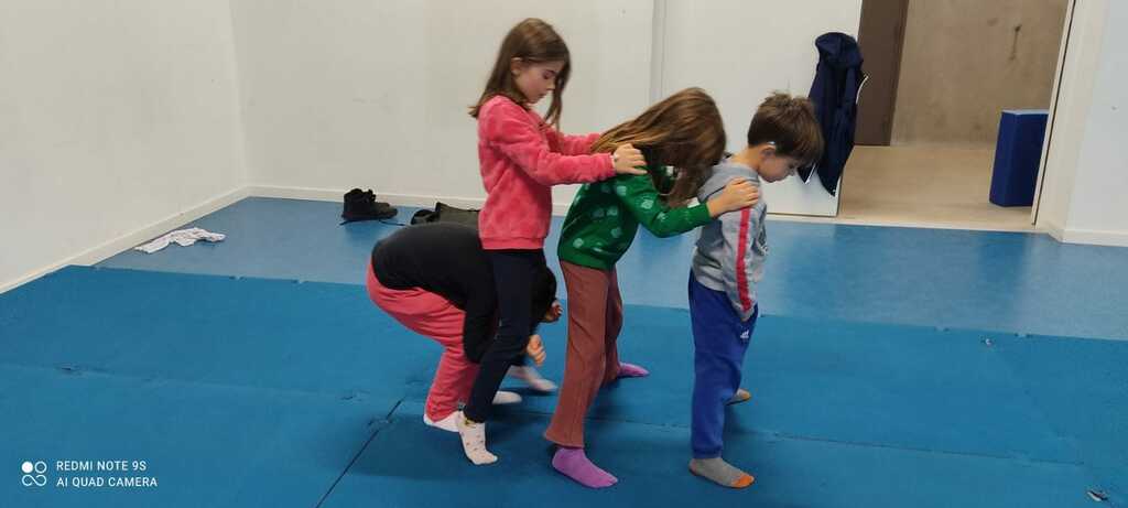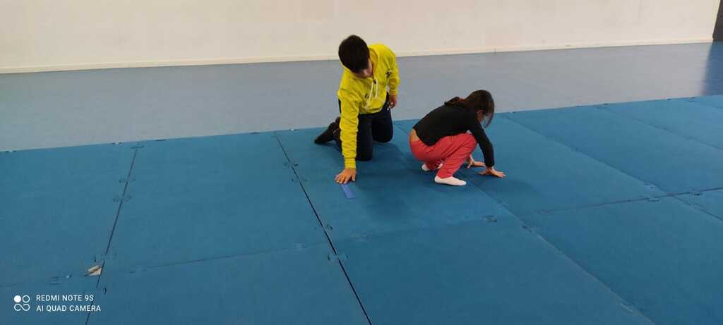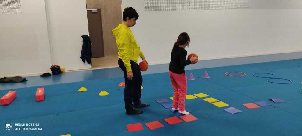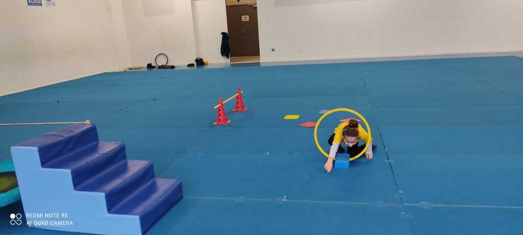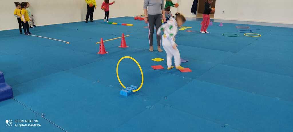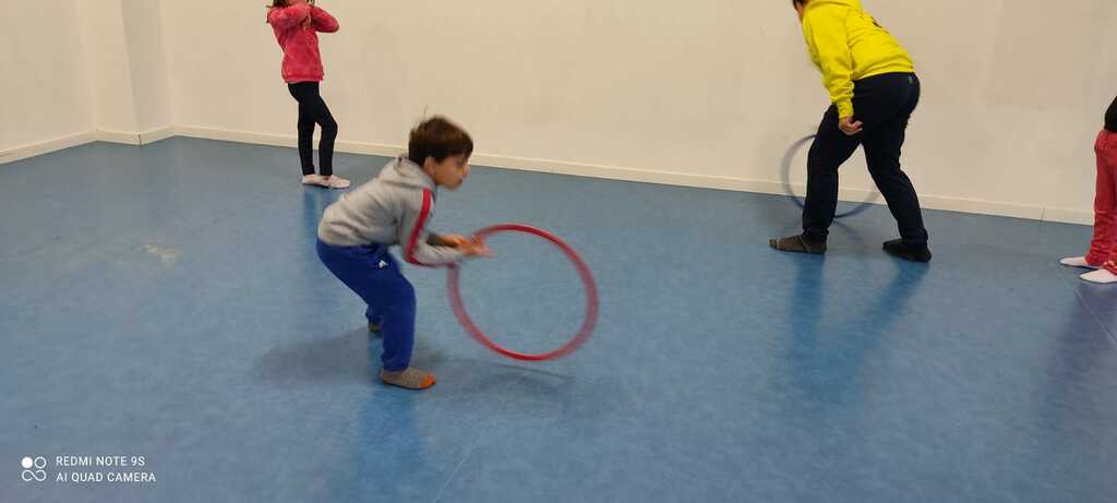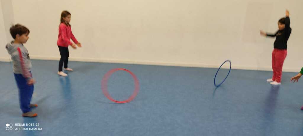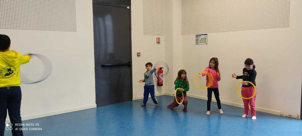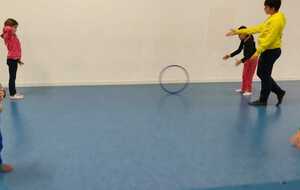 Après une pause boisson nous avons intégré notre salle pour les échauffements, qui ont été fait avec un élément : un cerceau chacun .(voir photos ) petite nouveauté...