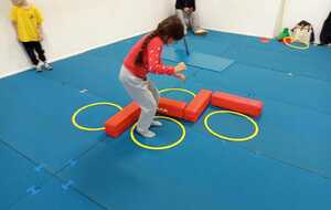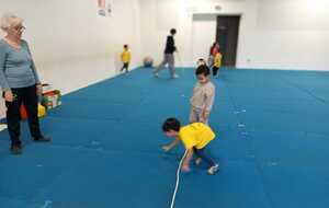 3ème atelier... le pont. Par 2 face a face pieds contre pieds il fallait faire un pont et celui qui était seul devait passer en rampant sous les ponts et a la sortie prendre la place d'un qui fait le pont et cela jusqu'à ce que tous soient passés sous les ponts