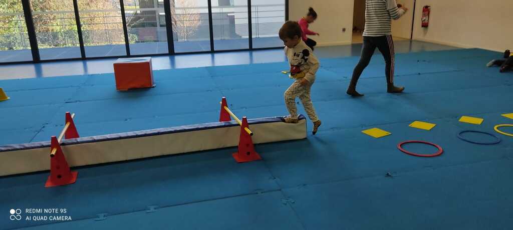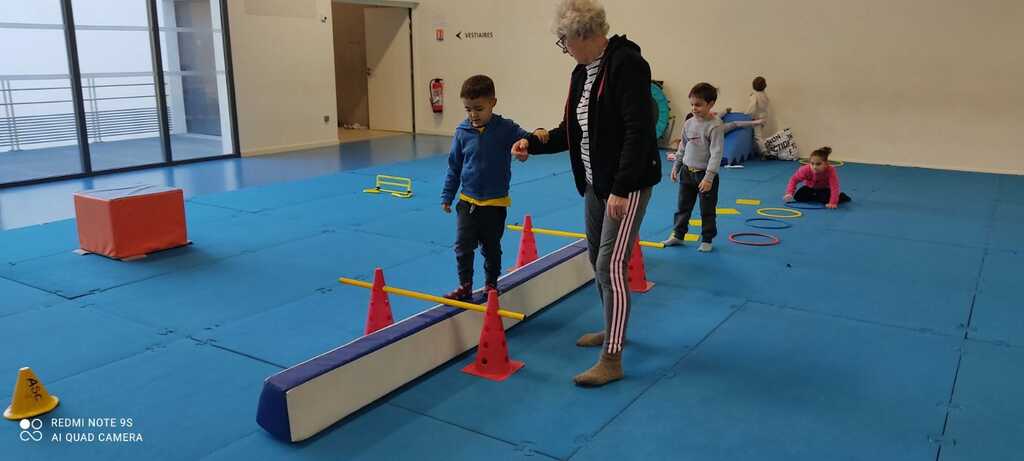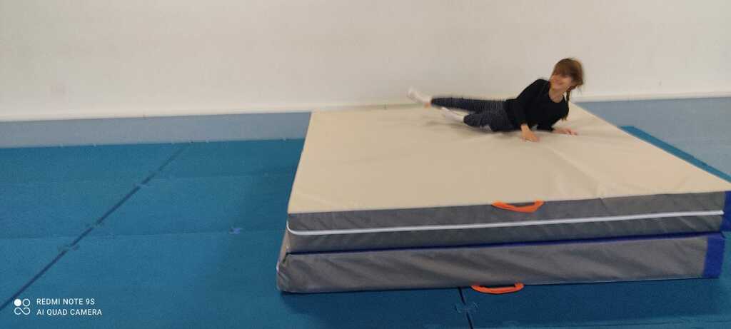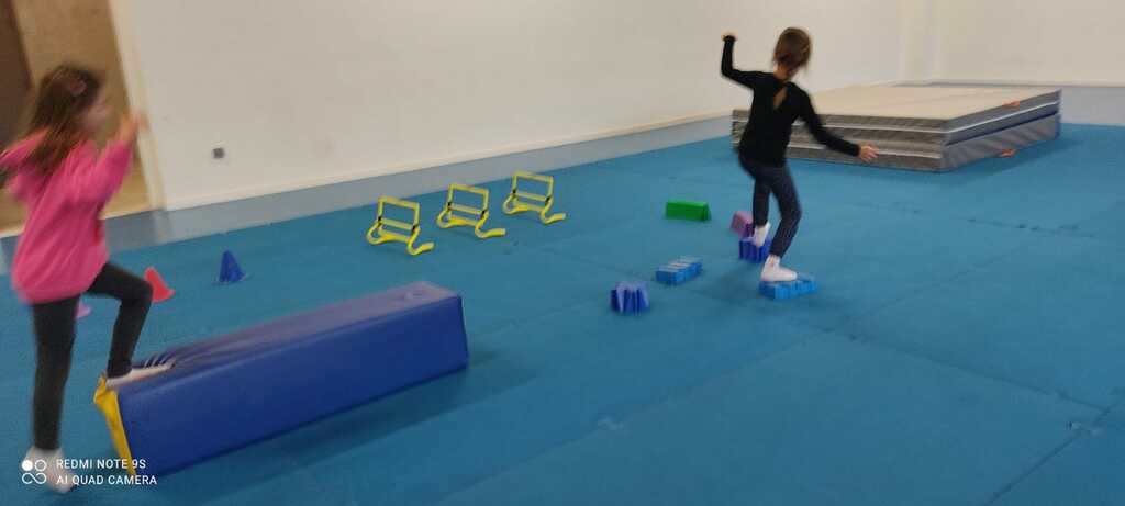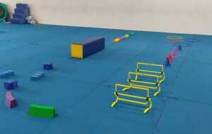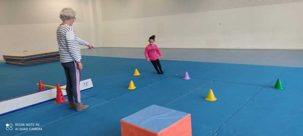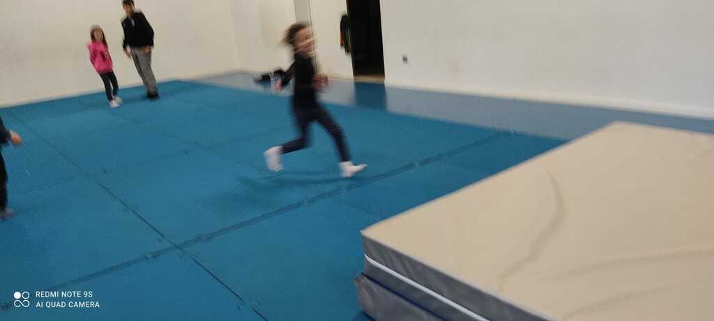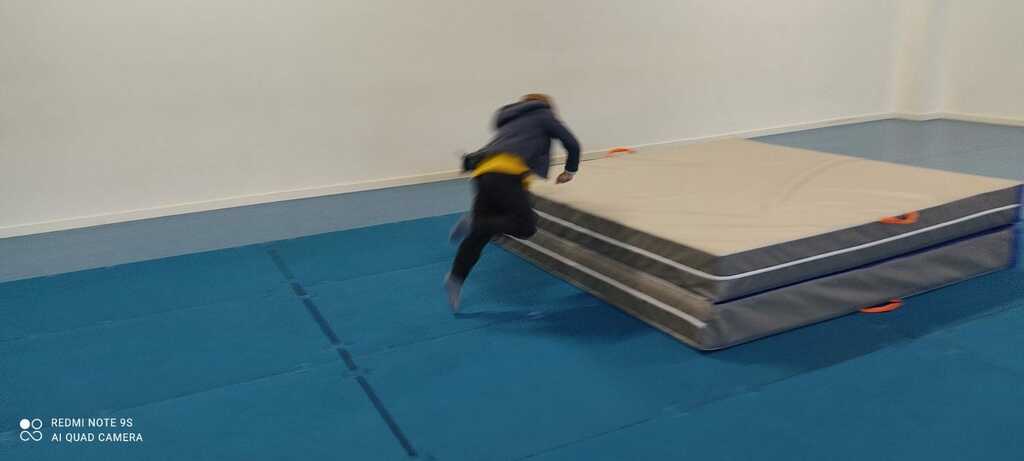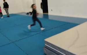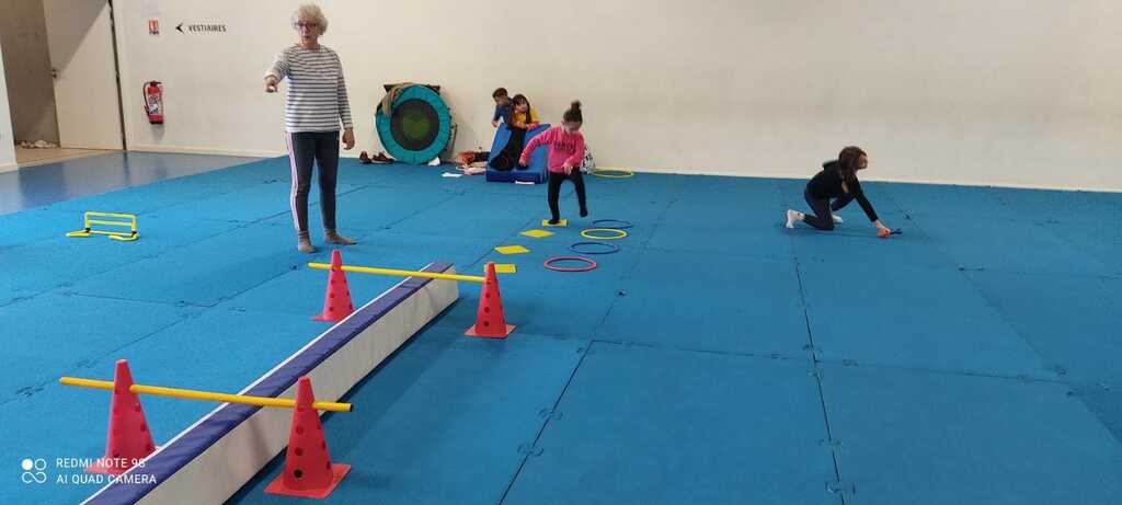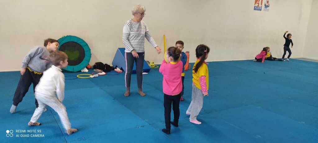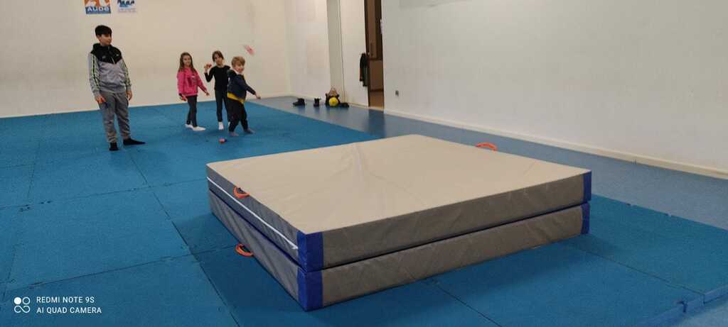 3ème atelier : sauter sur un haut tapis ...initiation au saut en hauteur . Là il s'agissait en prenant de l'élan de courir et sauter de n'importe quelle manière sur le tapis et pour une variante ils ont même réussi à sauter et faire une roulade . Ils ont tous apprécié ce nouvel atelier où ils se sont tous défoulés.