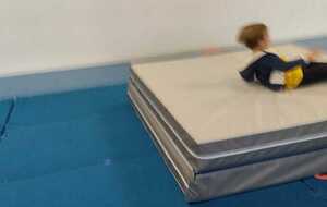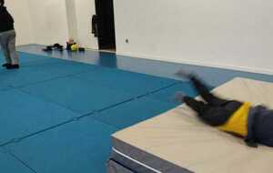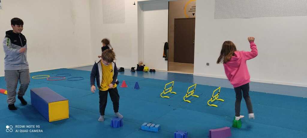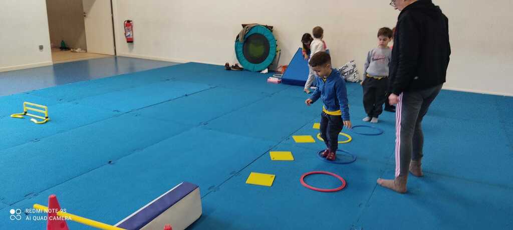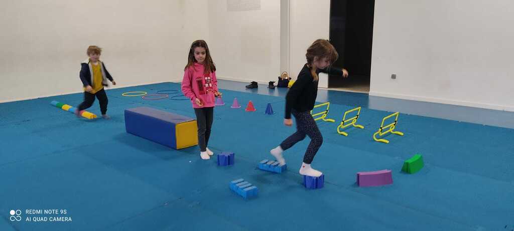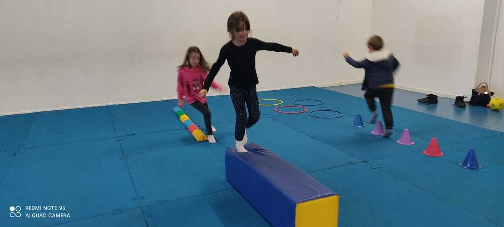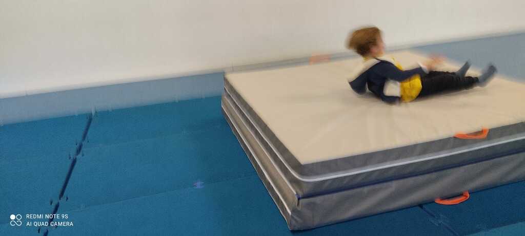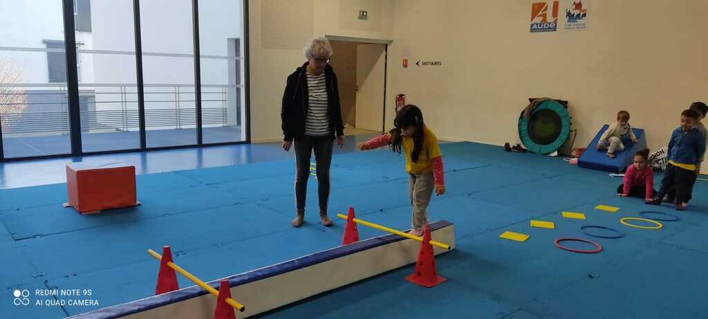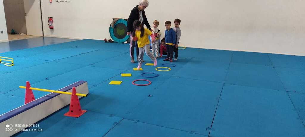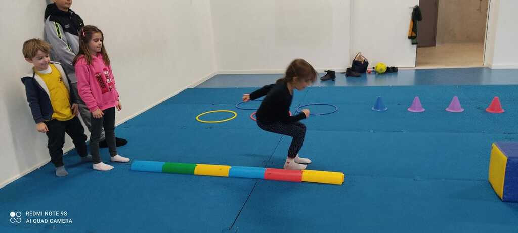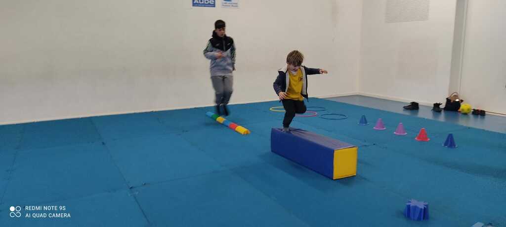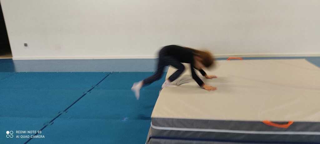 3ème atelier : sauter sur un haut tapis ...initiation au saut en hauteur . Là il s'agissait en prenant de l'élan de courir et sauter de n'importe quelle manière sur le tapis et pour une variante ils ont même réussi à sauter et faire une roulade . Ils ont tous apprécié ce nouvel atelier où ils se sont tous défoulés.