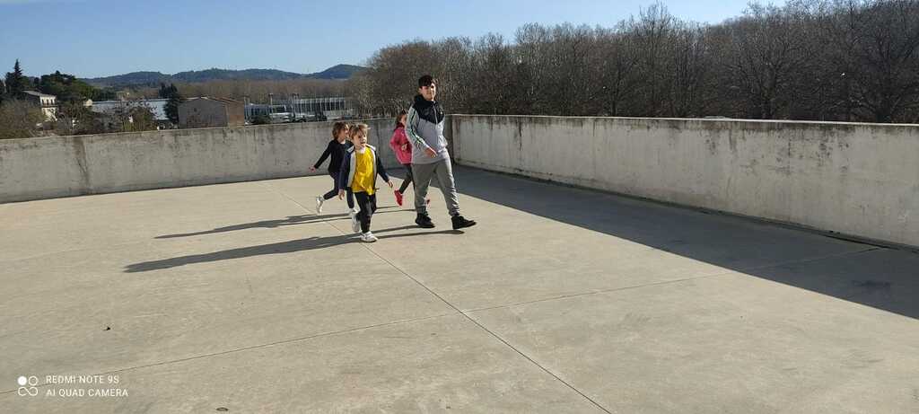 C'est sous un temps d'été que nous avons fait le footing et la marche rapide devant le gymnase avec 2 absences .