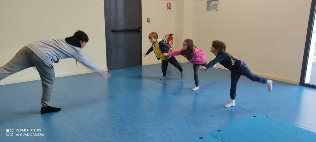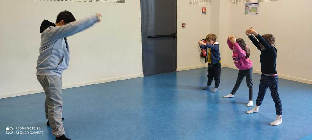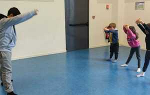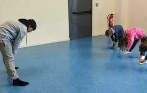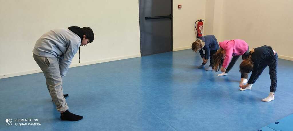 Après la pause hydratation nous avons intégré la salle pour poursuivre avec l'échauffement préparé par Loan (voir photos) suivi des ateliers