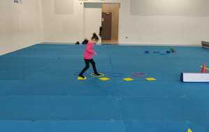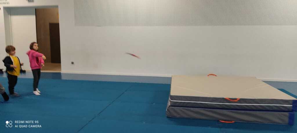 2ème atelier : le lancer de vortex, le but était lancer le plus loin possible et surtout au delà du tapis .