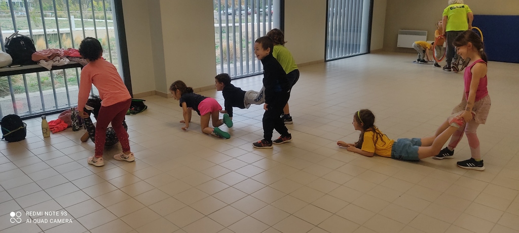 Pour le 3ème atelier, ça été détente avec la course en faisant 2 par 2 la brouette qui arrivera d'un mur à l'autre sans s' écraser au sol en menant la brouette