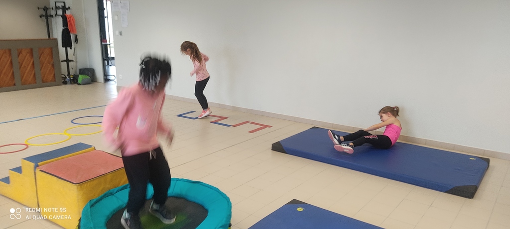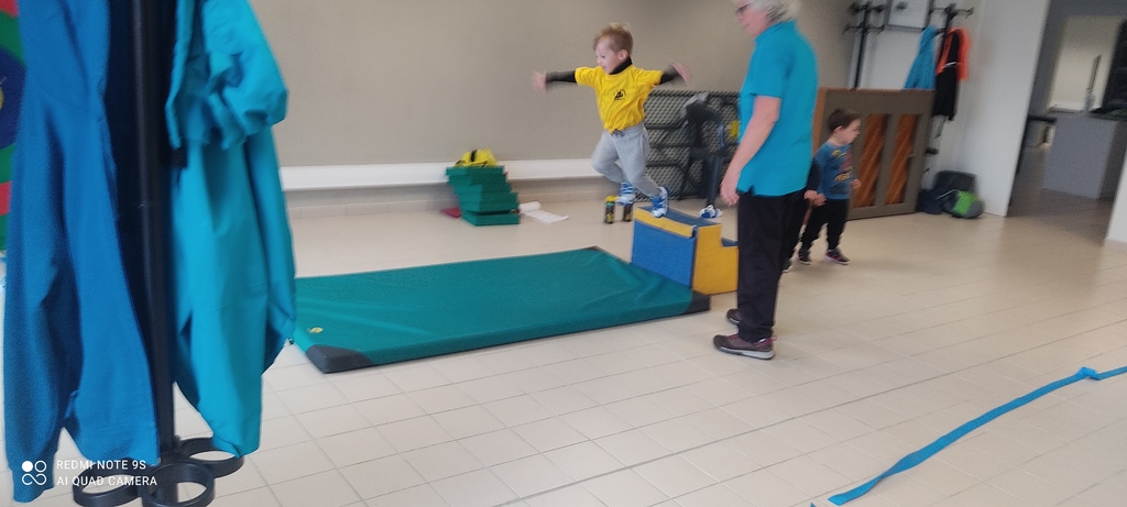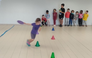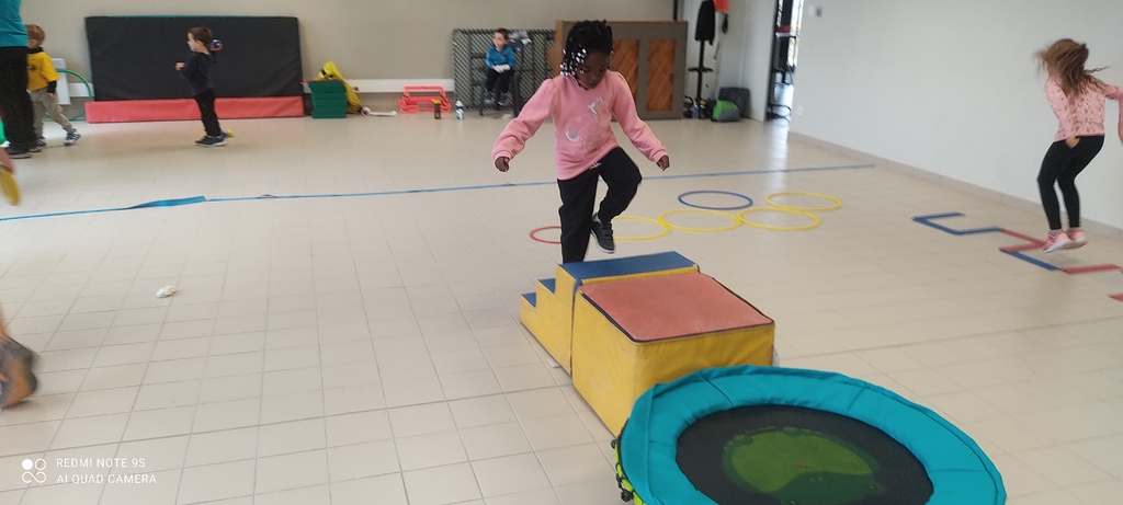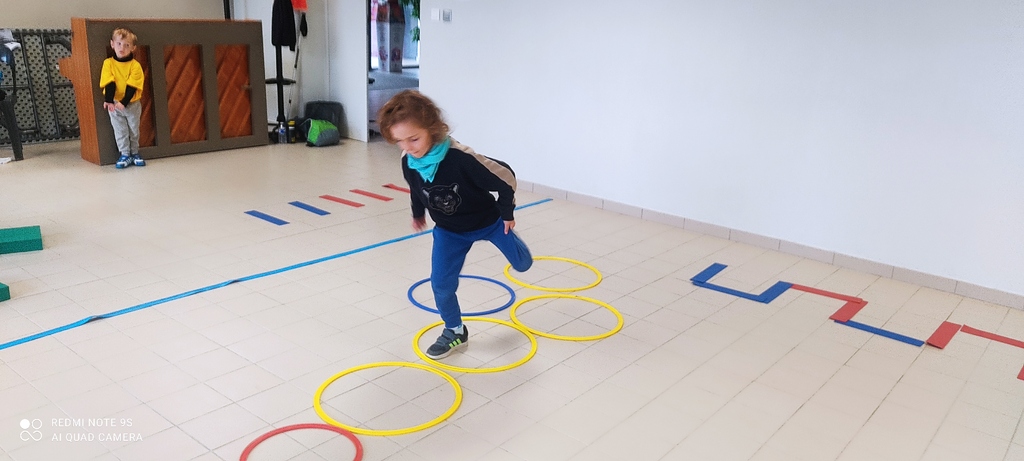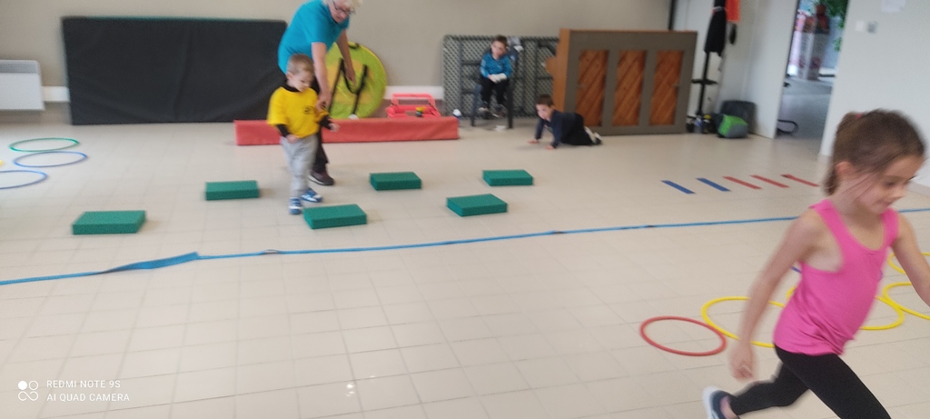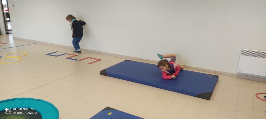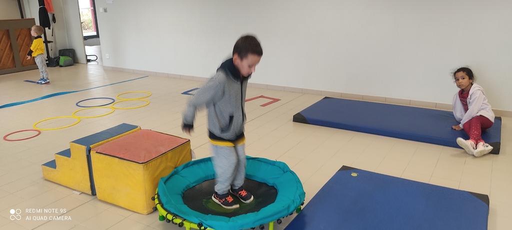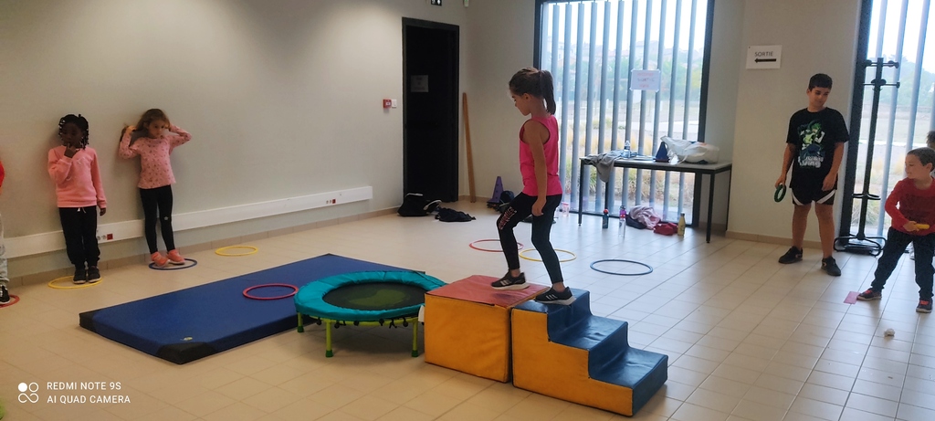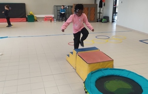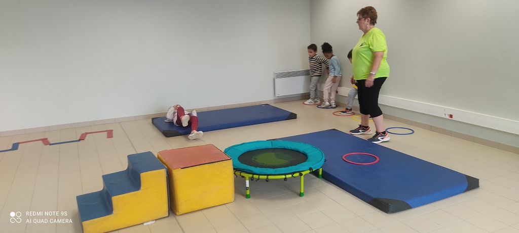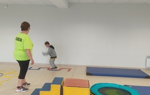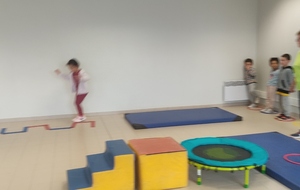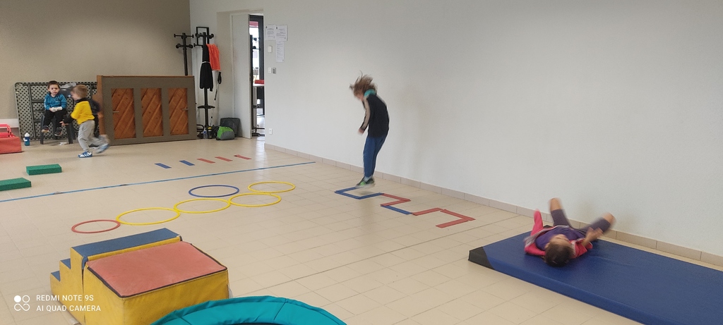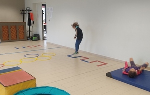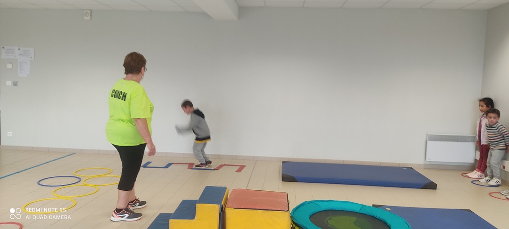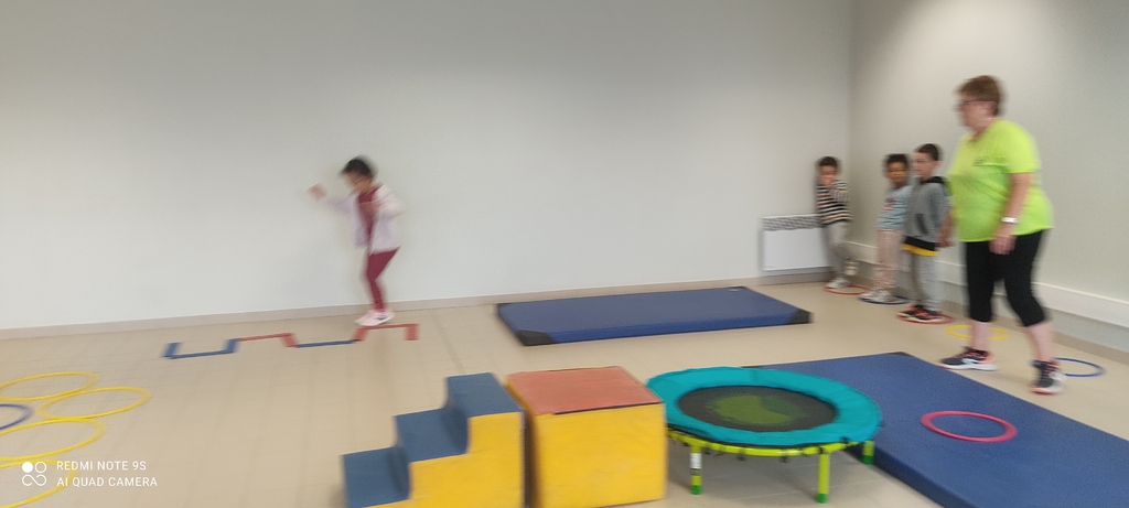 petit parcours ludique avec moi et 2ème atelier : lancer d'anneaux dans cerceaux avec Loan en interchangeant nos groupes afin que tous fassent les 2.