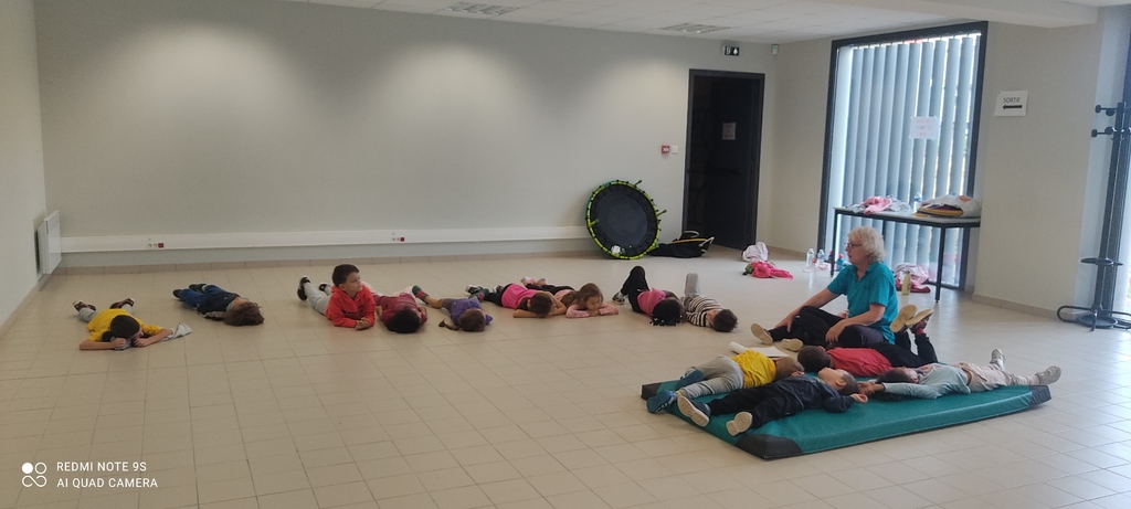 Pour clôturer la séance Michèle leur a fait le retour au calme autour de qelques exercices respiratoires et après elle les a fait voyager sur un tapis volant à la découverte de ce qu'ils pouvaient apercevoir .....pas mal d'imagination, lorsque je les ai interrogé sur ceux qu'ils avaient aperçu !!!!