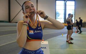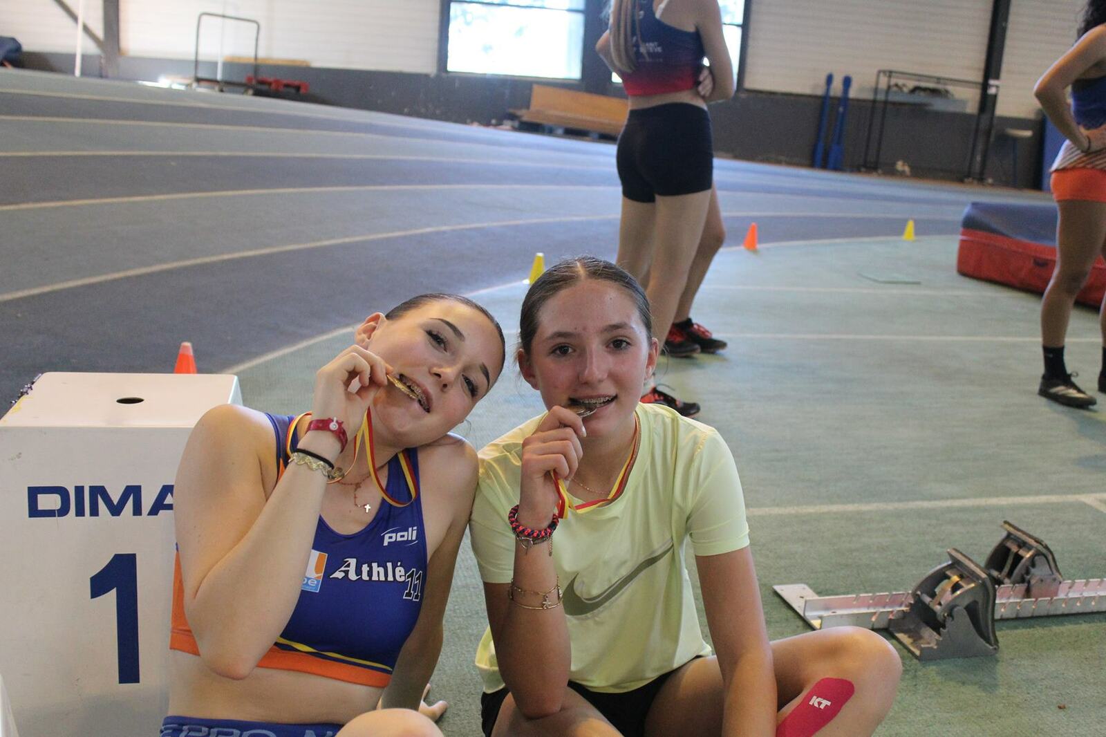 - un triplet sur le triple saut, Katy Watt en Or avec 7,28 m, Clelie Sabadie médaille d'argent avec 7,12 m, Cloé Caverivière médaille de bronze avec 7,03 m.