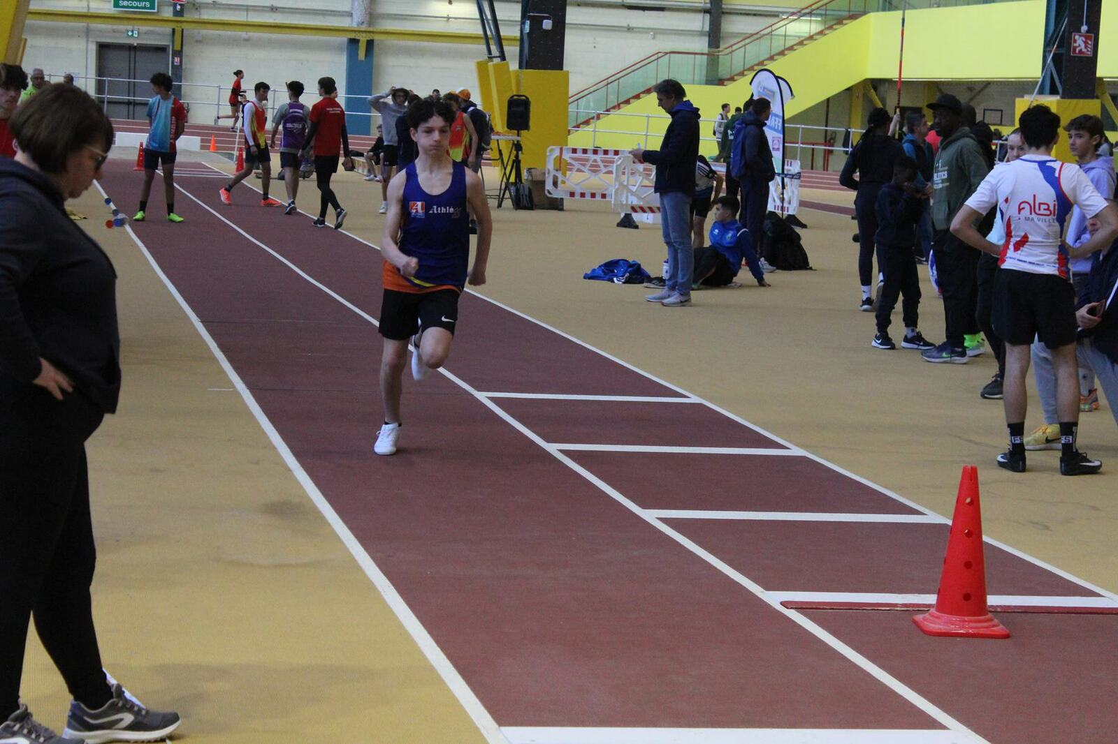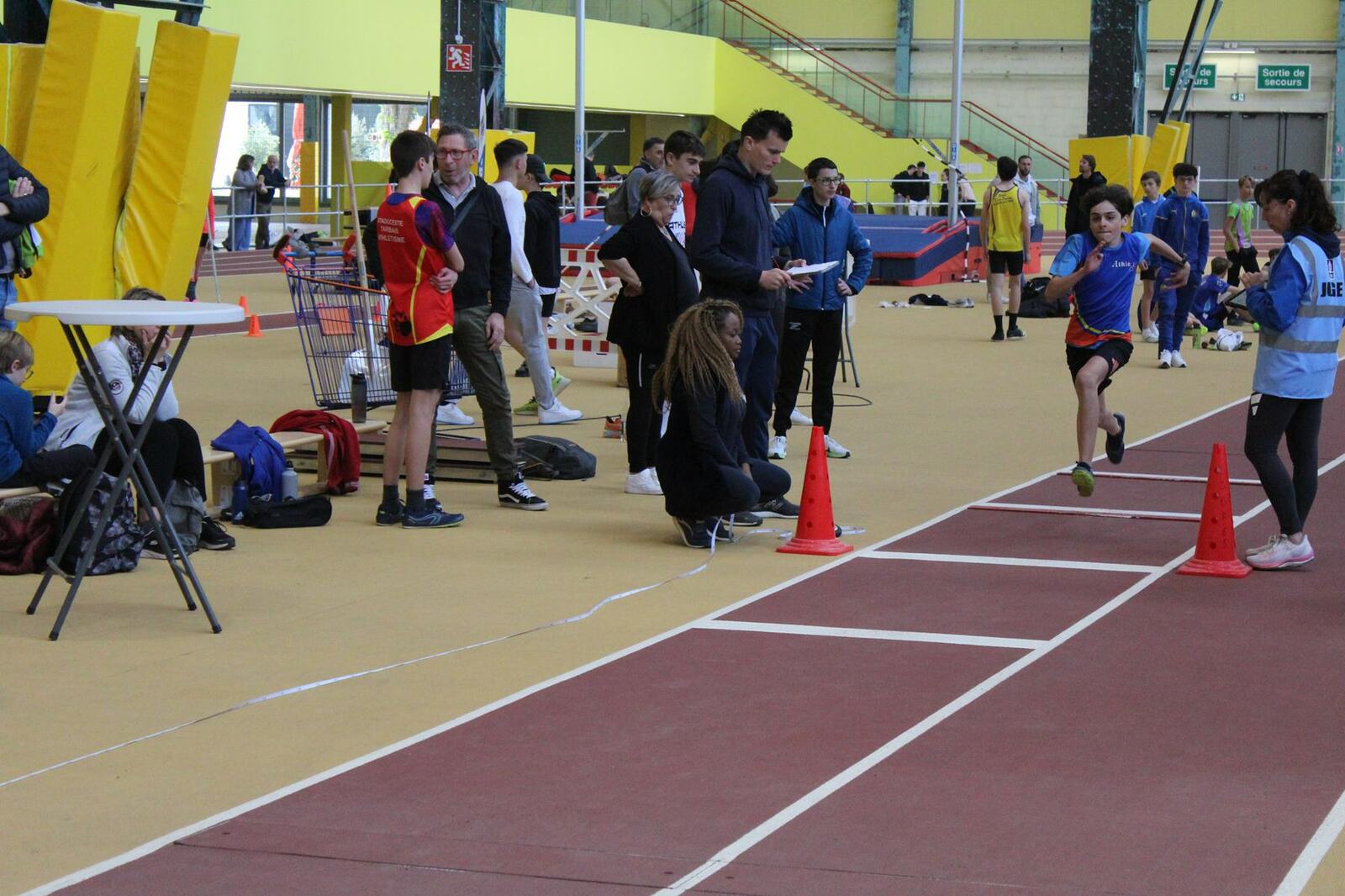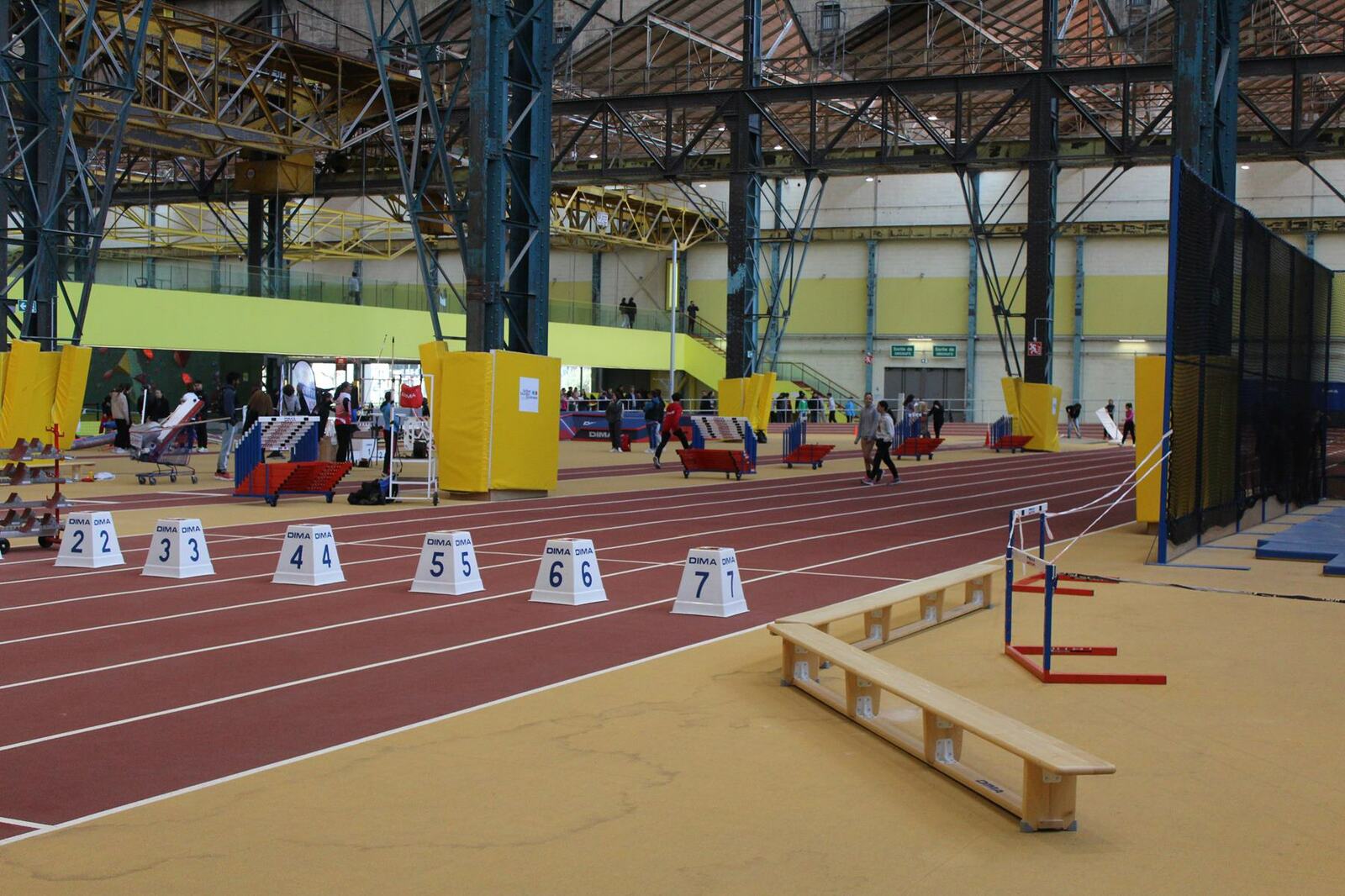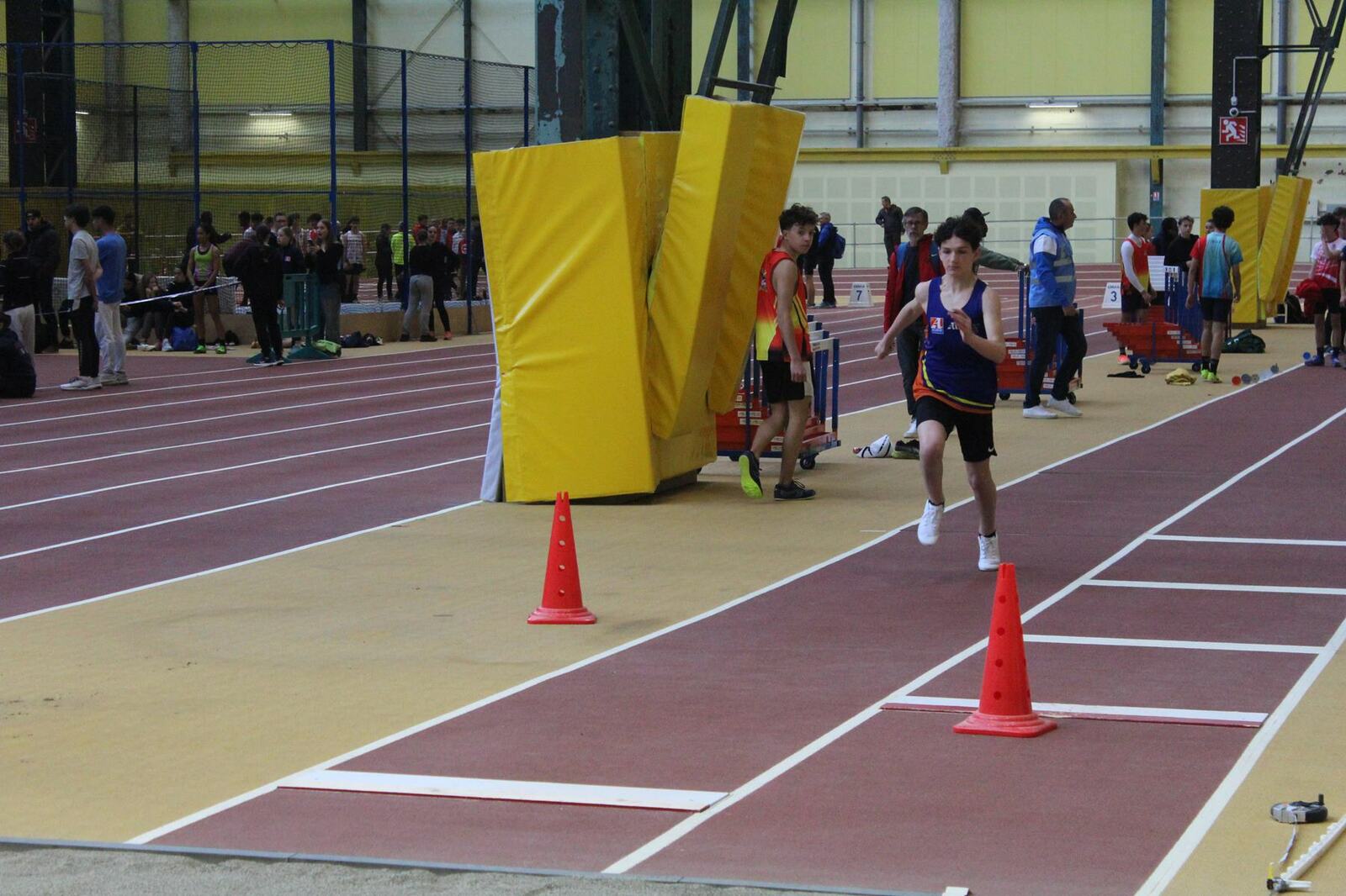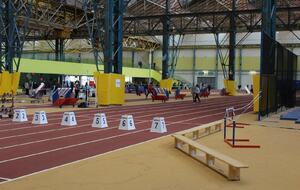 Les championnats d'occitanie minimes en salle se sont disputés à Tarbes. Un lieu pittoresque, l'usine, c'est le nom de la salle, effectivement c'est une ancienne usine avec les ponts roulants toujours en place, sans parler des piliers.
