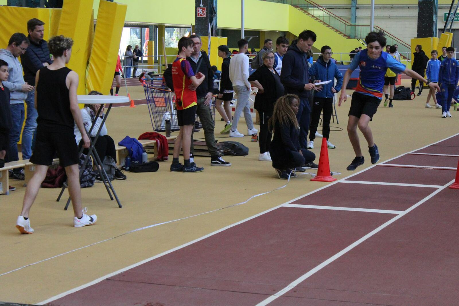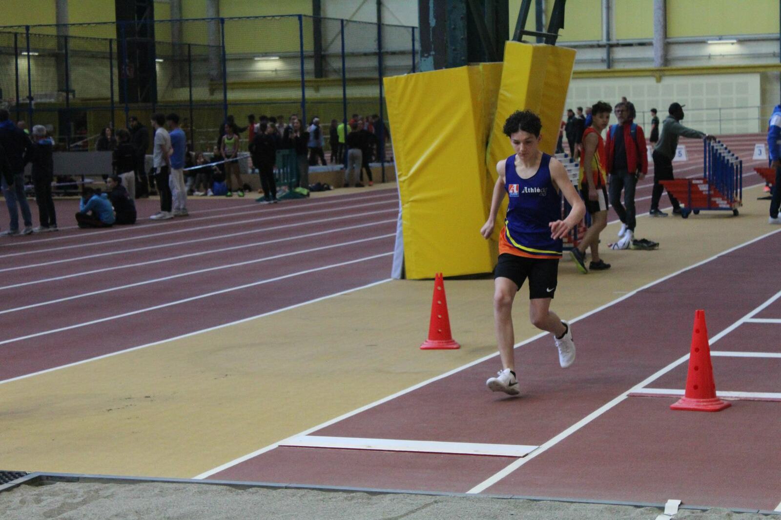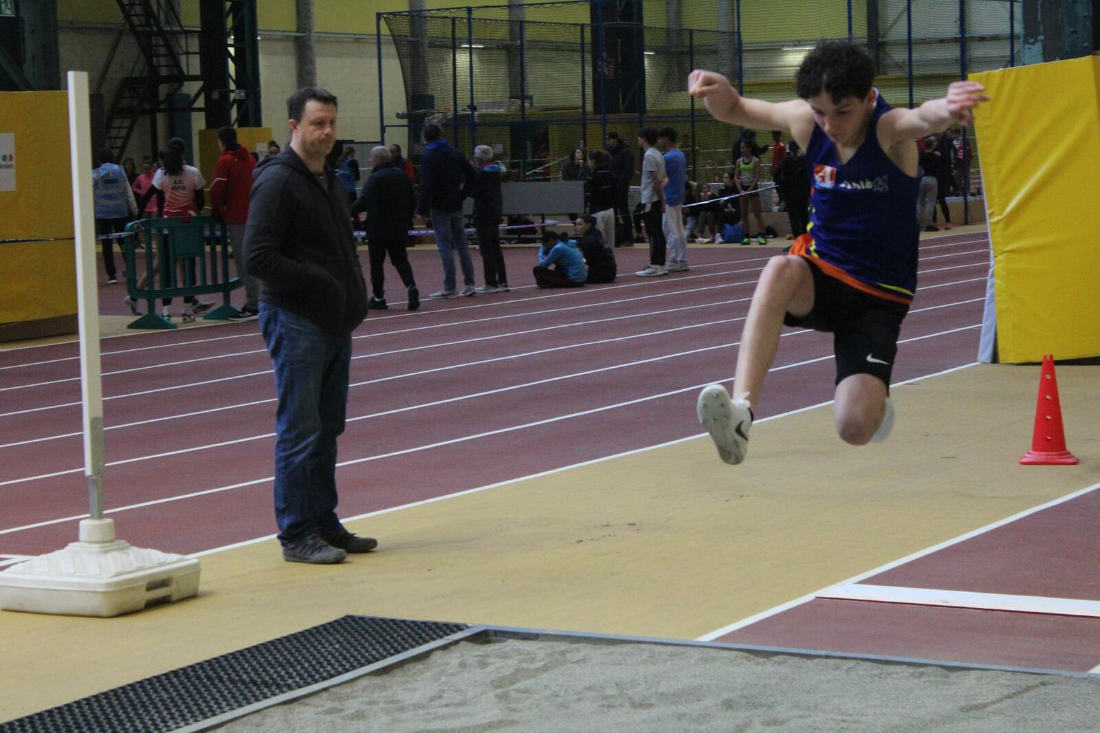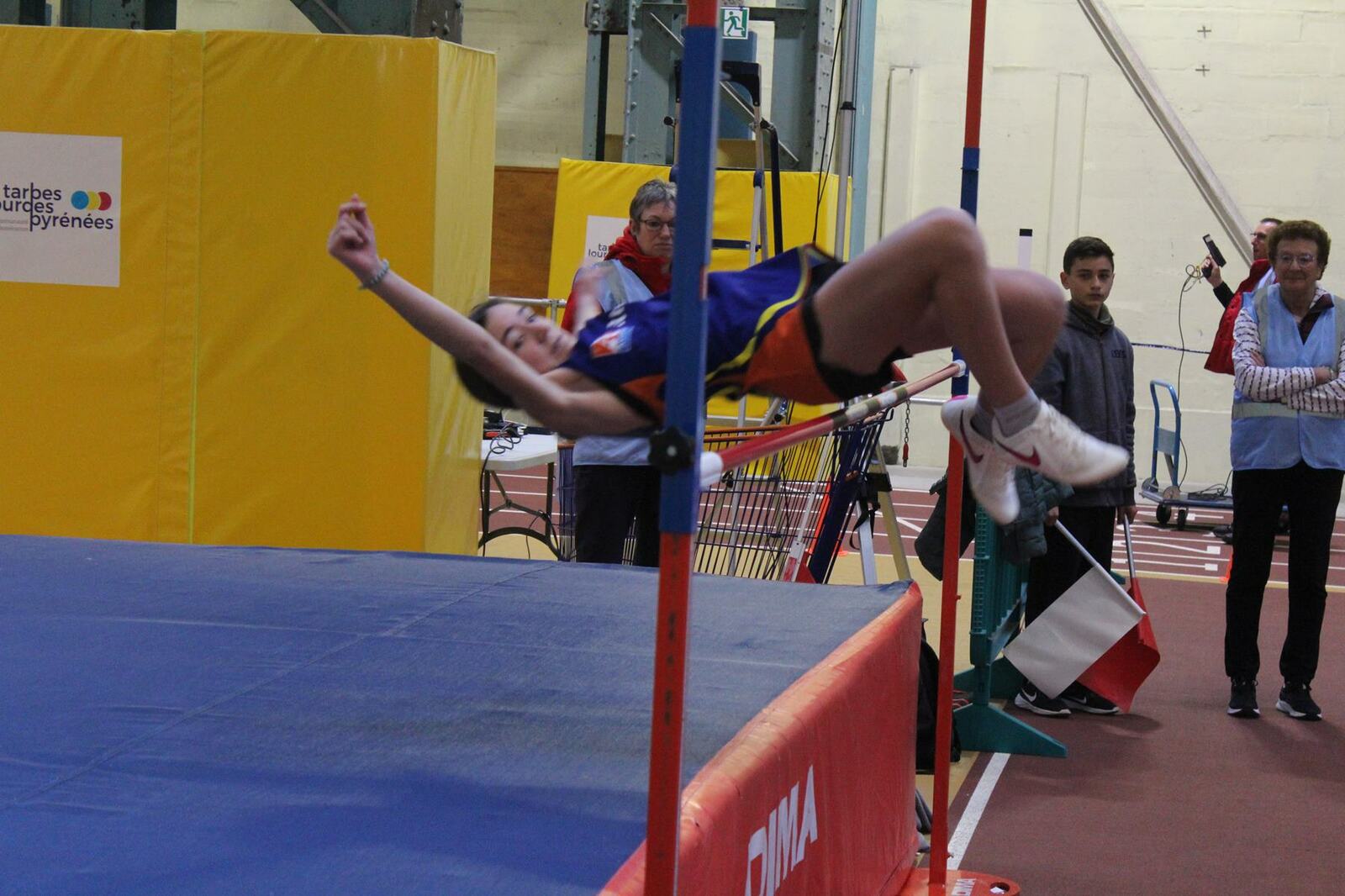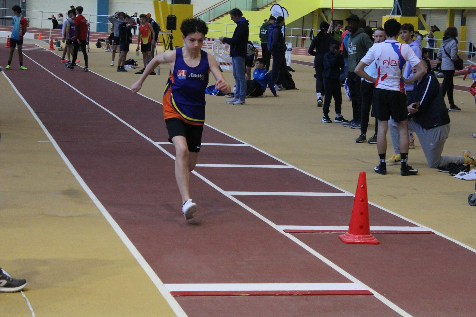 Les championnats d'occitanie minimes en salle se sont disputés à Tarbes. Un lieu pittoresque, l'usine, c'est le nom de la salle, effectivement c'est une ancienne usine avec les ponts roulants toujours en place, sans parler des piliers.