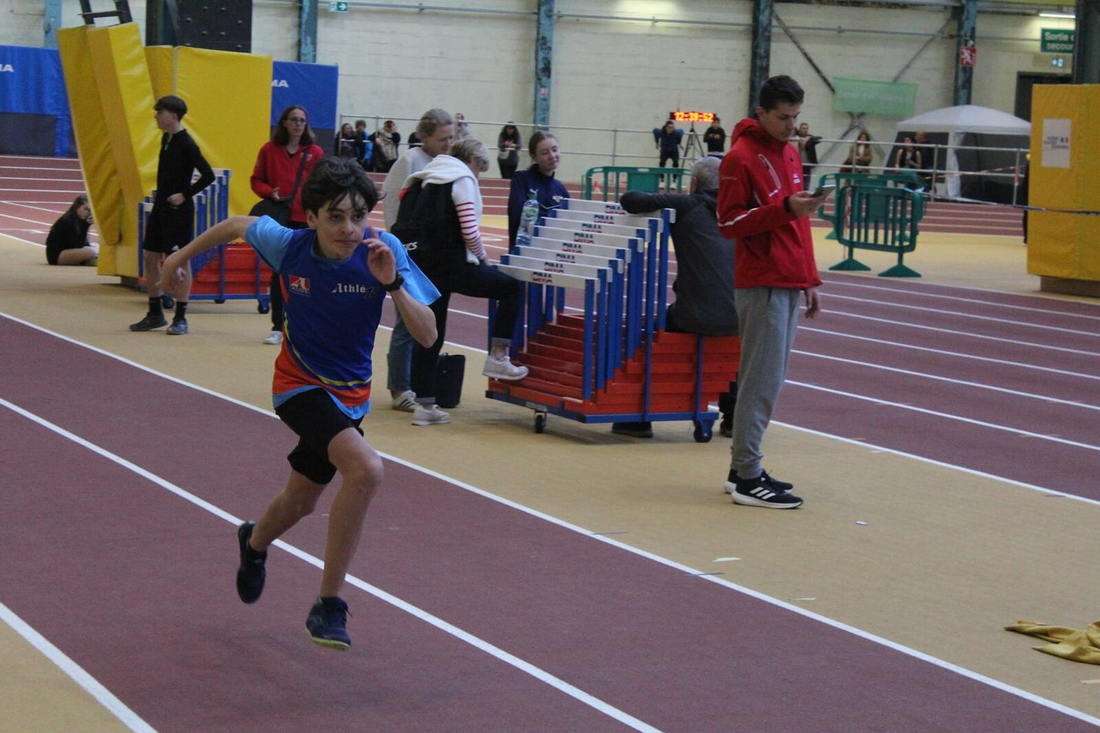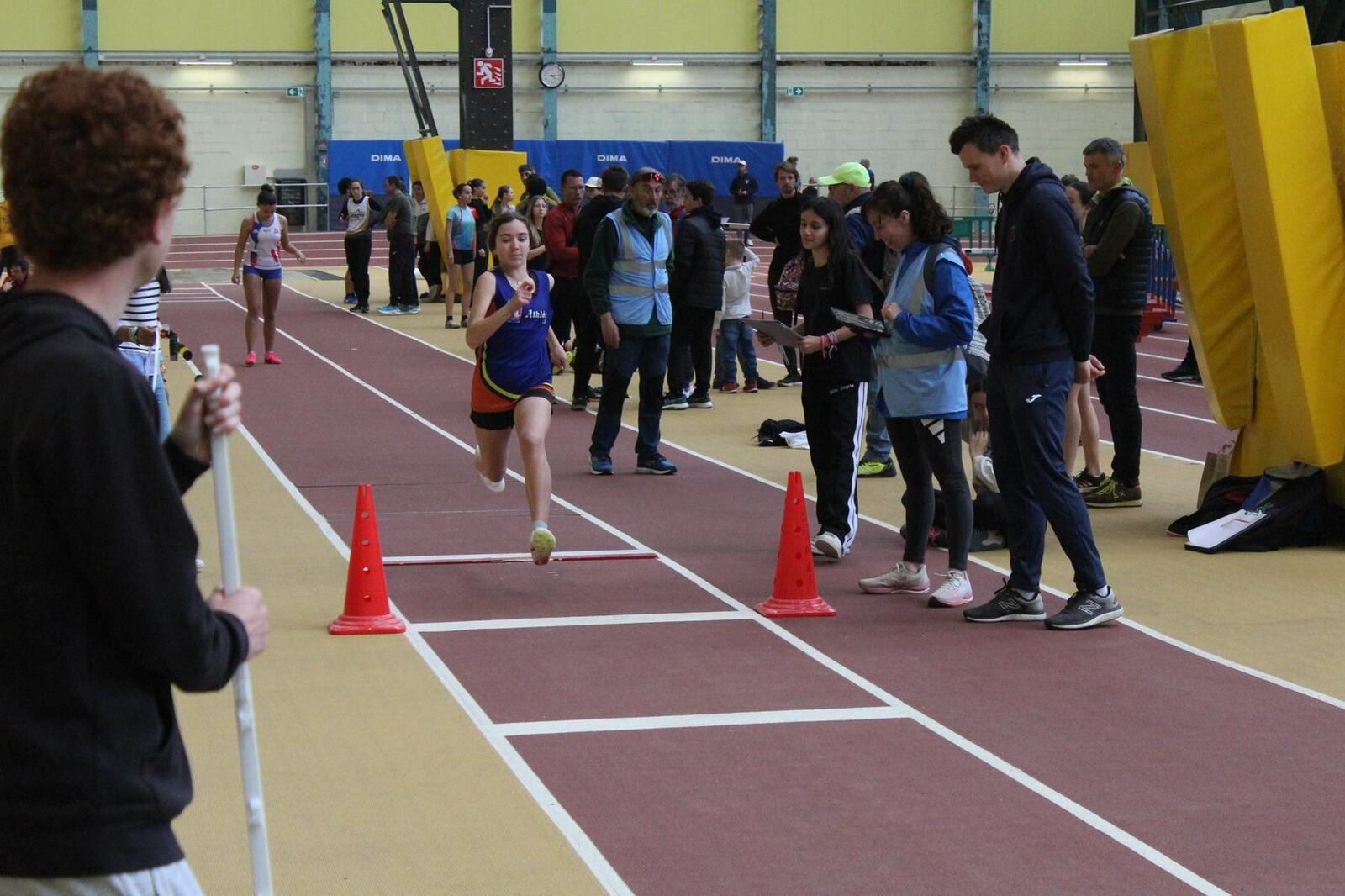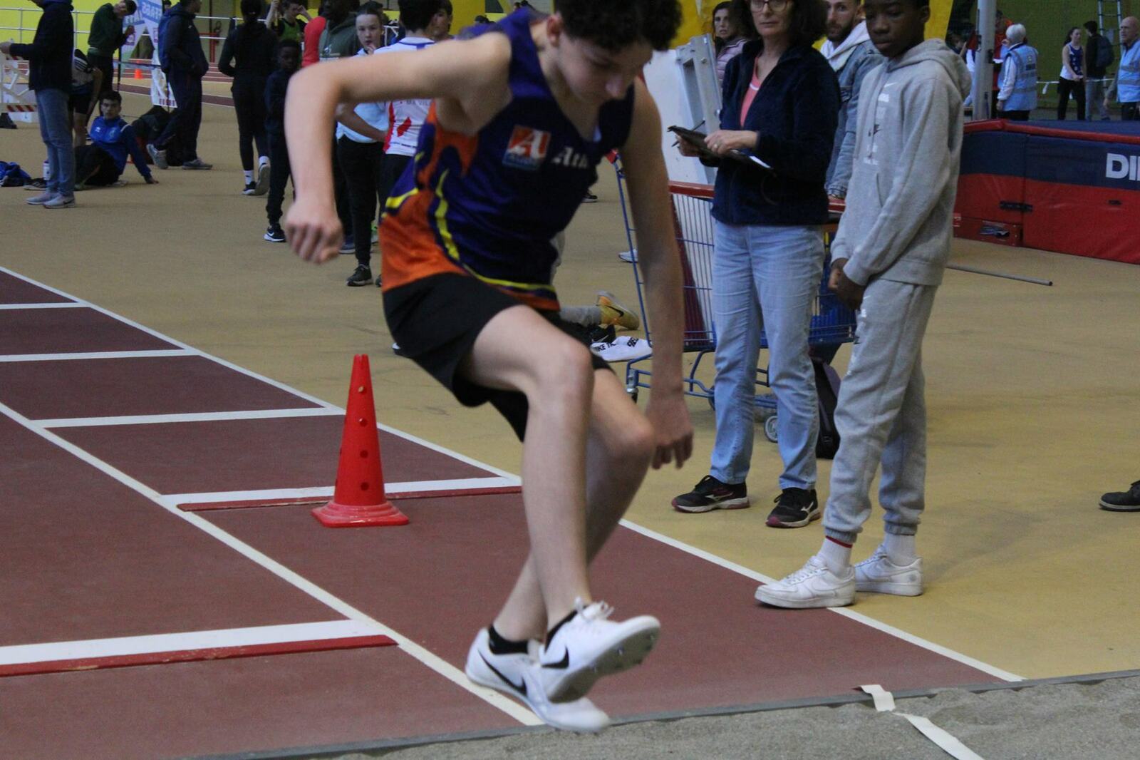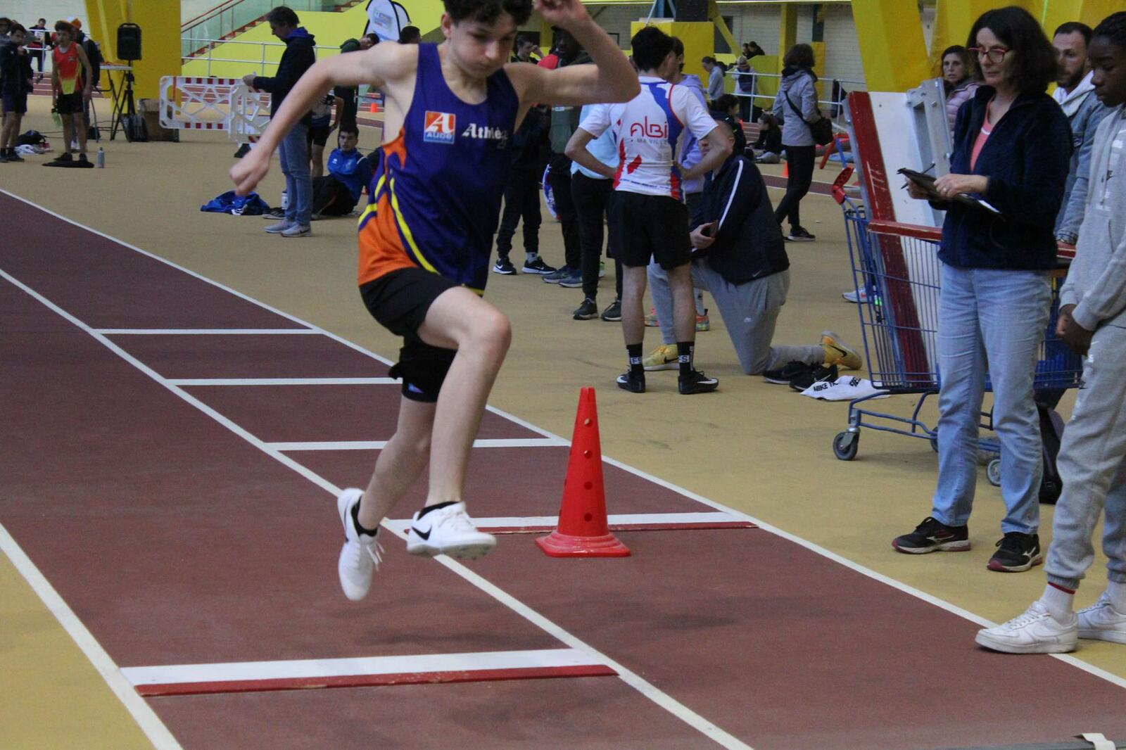 Les championnats d'occitanie minimes en salle se sont disputés à Tarbes. Un lieu pittoresque, l'usine, c'est le nom de la salle, effectivement c'est une ancienne usine avec les ponts roulants toujours en place, sans parler des piliers.
