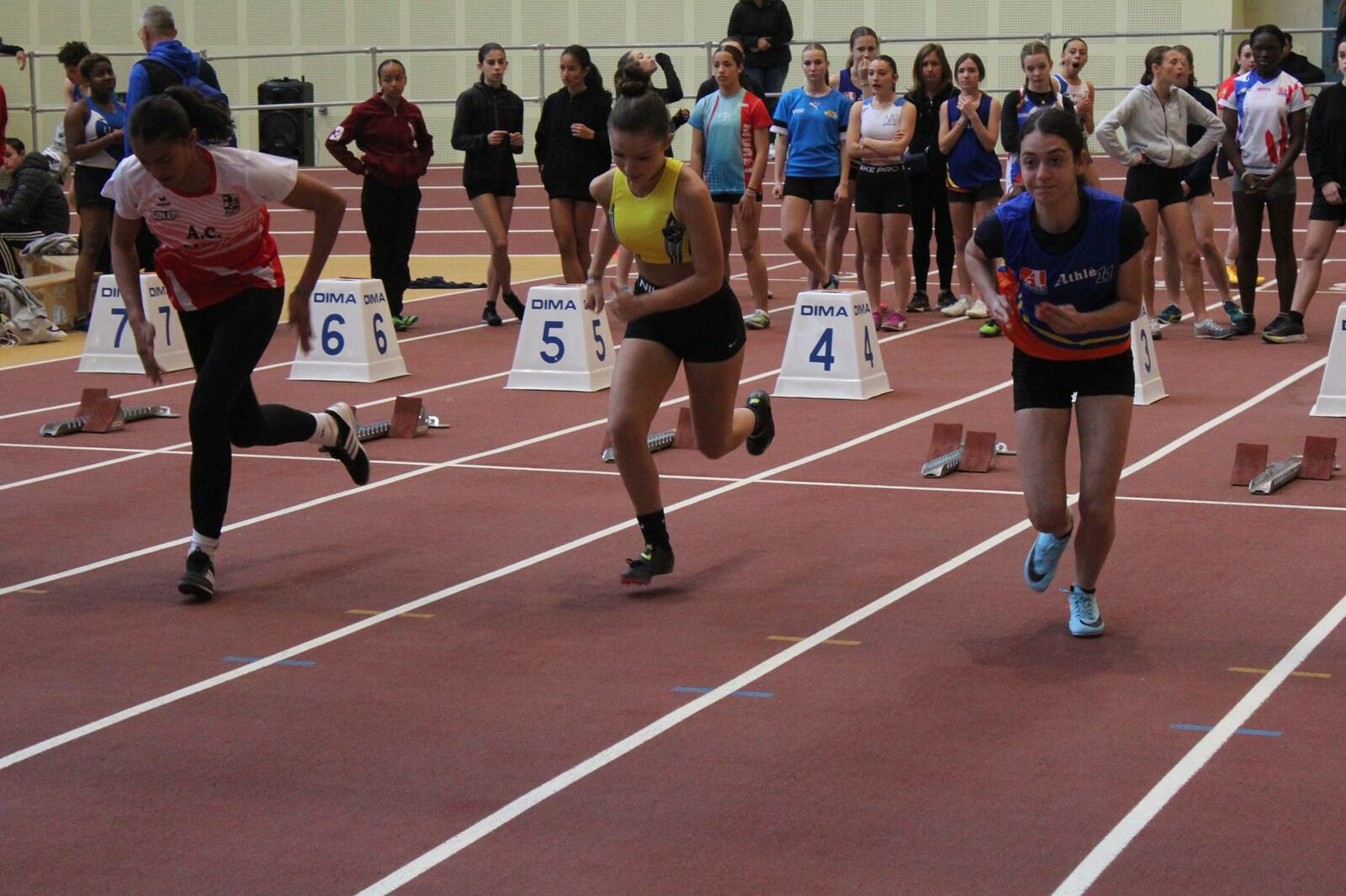 3 filles : Lana Bion, Léonie Cabocel et Ana Vega. Une sortie positive pour Ana, qui bat son record personnel sur le 50 m en 7"64, ancien record 8"07.