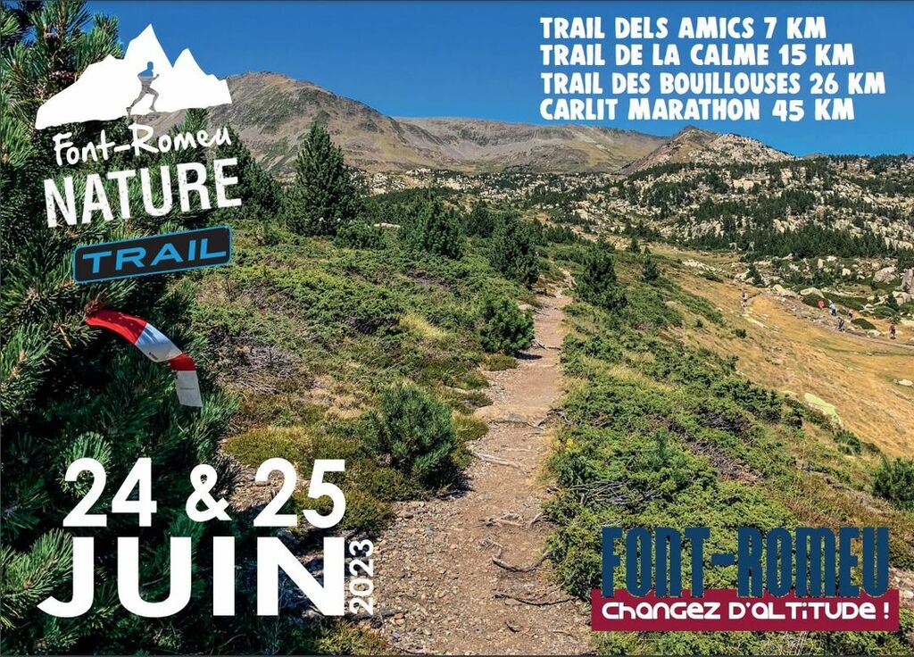 Week-end courses natures à Font Romeu sur 2 jours 24 et 25 juin. Quatre courses au programme, un 7 km avec 300m de dénivelé positif, un 15 km avec 700m de dénivelé positif, un 26 km avec 1000m de dénivelé positif et un 45 km avec 2000m de dénivelé positif.