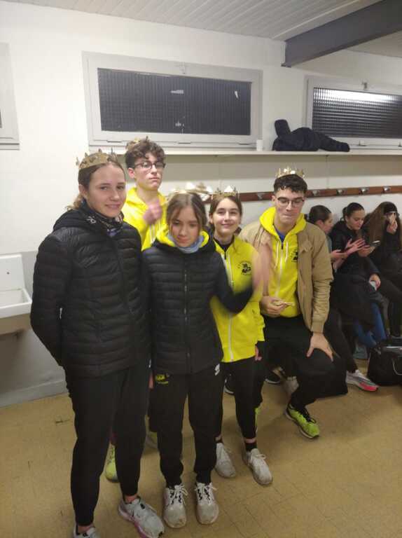 Même cérémonial pour le groupe Mi/Ca/Ju/Es, environ une trentaine d'athlètes ont dégusté la brioche ou la galette. Les reines sont Léonie, Lana, Emma et les rois Romain et Maxence.
