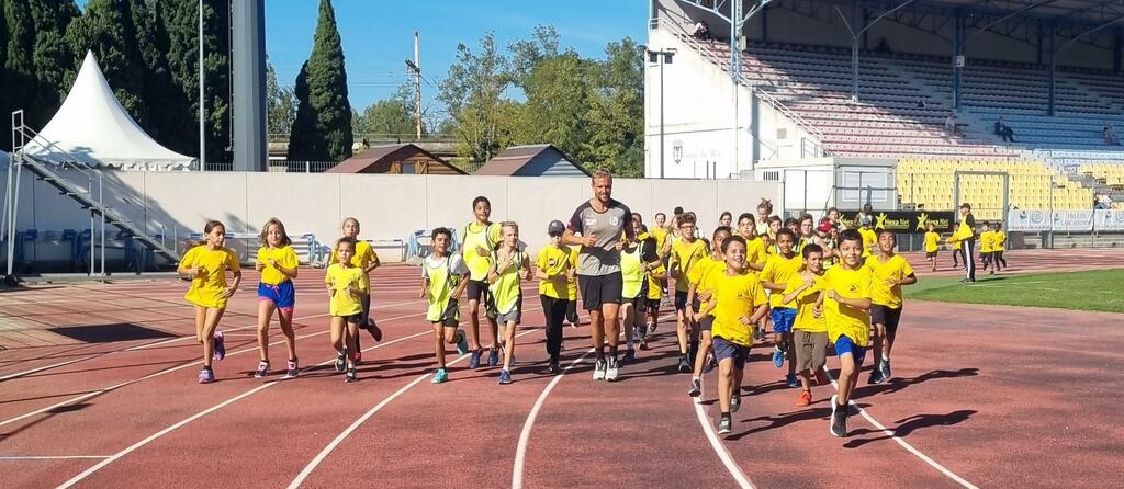 d’athlétisme du stade Albert Domec. Il a été accompagné par plus de quarante jeunes athlètes de l’ASC