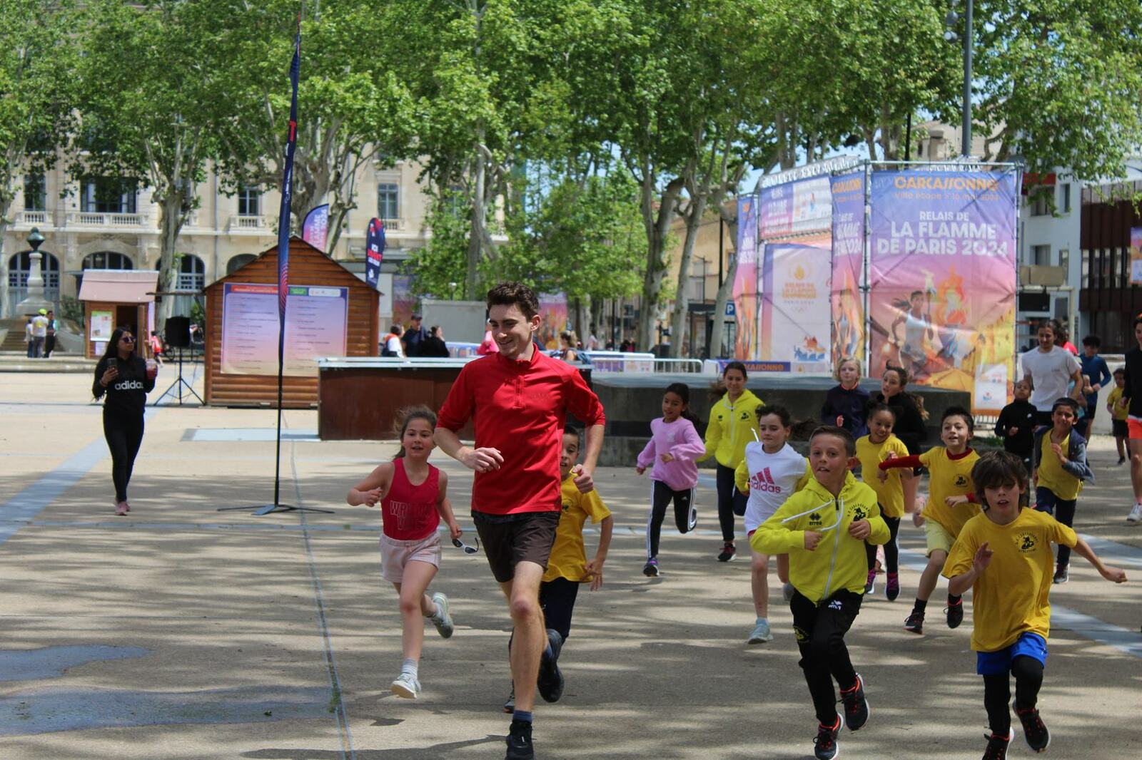 Dans le cadre du relais de la flamme olympique 2024 à Carcassonne, une animation sportive était organisée ce samedi 4 mai sur le parking Chenier.