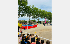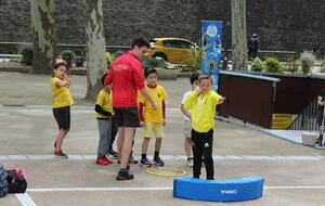 La séance des jaunes et noirs s'articulait autour de plusieurs ateliers avec en point d'orgue la démonstration de Jean Delaur au saut en hauteur. Le recordman junior de l'Aude (1,97 m) a enchanté les jeunes pousses de l'ASC qui par la suite, envahirent le tapis pour imiter leur ainé.