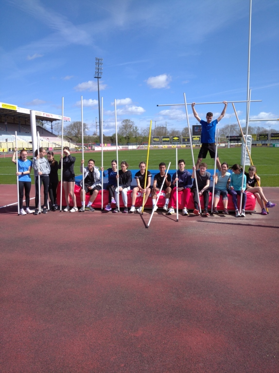 L'entraînement Mi/Ca/Ju de ce samedi matin 25 mars était "perché". Soleil, bonne température, vent faible, en effet après l'échauffement et les fondamentaux la séance était dédiée au saut à la perche. Pas de record façon "mondo" mais une initiation au saut à la perche avec la prise en main de la perche, le bon côté pour s'élever aprés le planter de la perche. Pour finir poser les fesses après 3 foulées d'élan sur le tapis du saut en hauteur. Pratiquement tout le monde a vaincu la peur d'affronter le saut et le tapis.